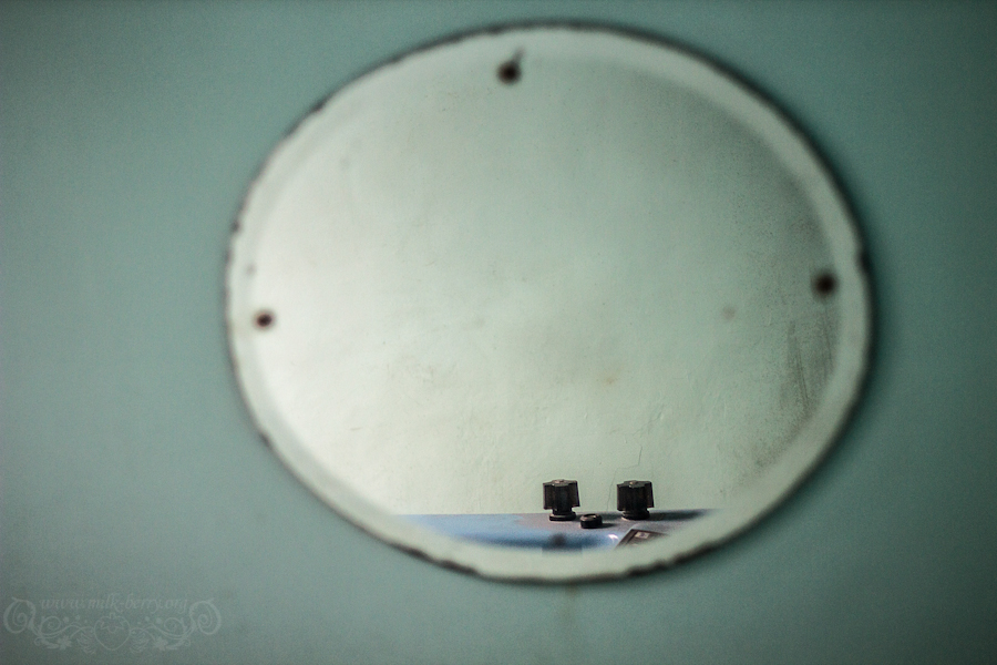 Il y a aussi beaucoup de miroirs. Soit toujours présents sur les murs ; soit traînant dans les couloirs, probablement déplacés là par de précédent passagers avides de mises en scène.