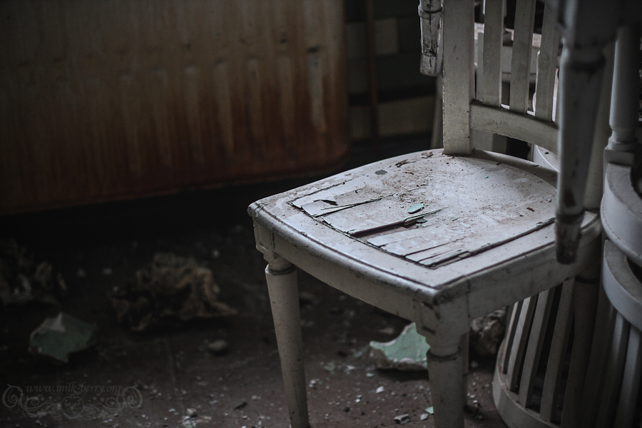Bien que les lieux soient loin d’avoir conservé tout leur luxe, on trouve néanmoins encore quelques objets de ci, de là, des chaises notamment…