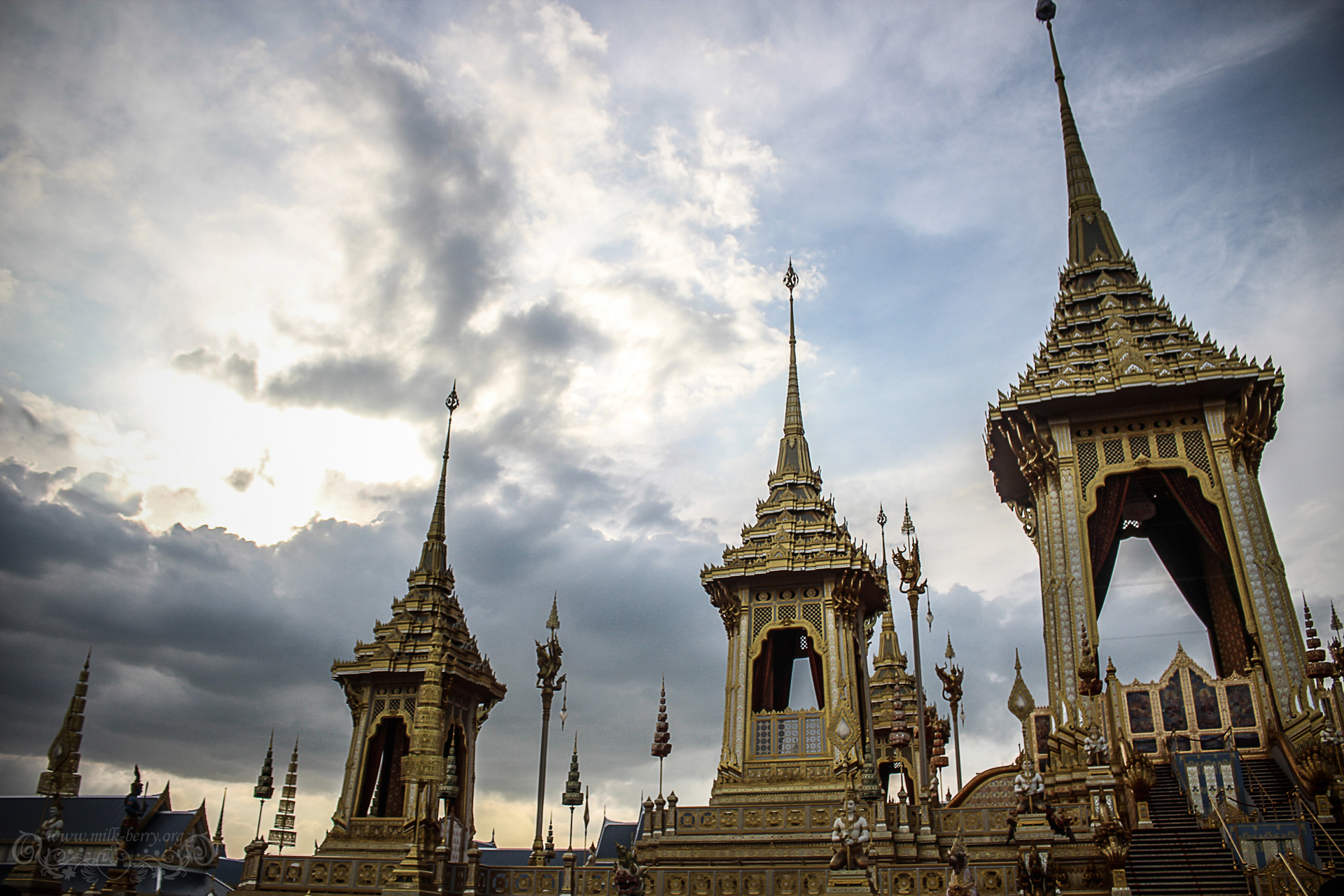 Il faut savoir une chose, c’est que le Roi a une place primordiale en Thaïlande où il est très respecté et vénéré de ses citoyens (pas comme en Belgique où, en toute honnêteté et sans vouloir manquer de respect à notre cher Philippe, on s’en tamponne quelque peu le coquillard). Le roi Rama IX a régné plus de 70 ans sur le pays, apportant énormément au peuple. Décédé en Octobre 2016, le monument funéraire aura requis 12 mois de construction… Et était ouvert au public en Novembre et Décembre pour une exposition exclusive et unique. De ce que j’ai pu lire, il sera ensuite détruit… En bref, on est passé par là par hasard et on a bien fait, c’était une chance unique !