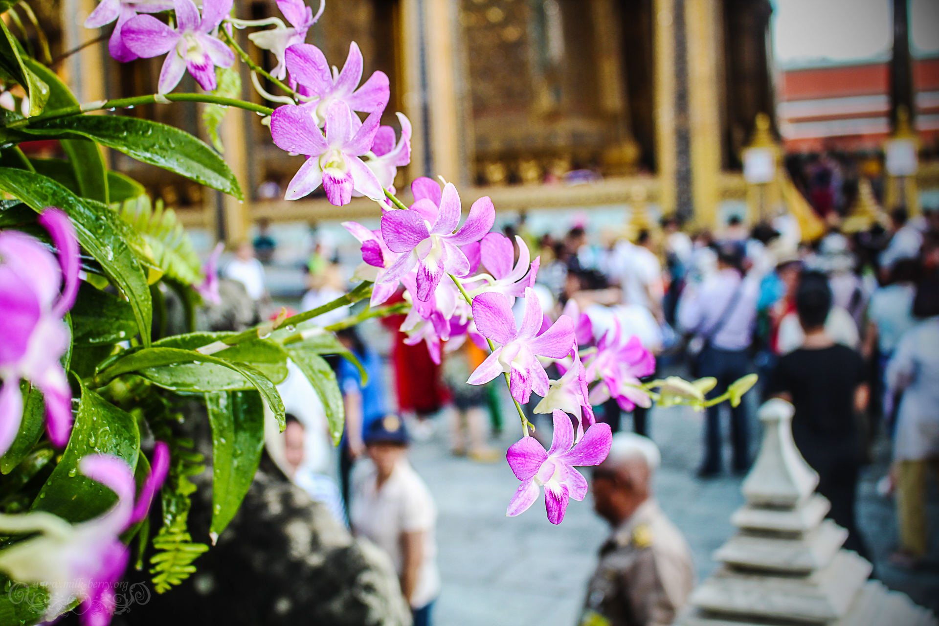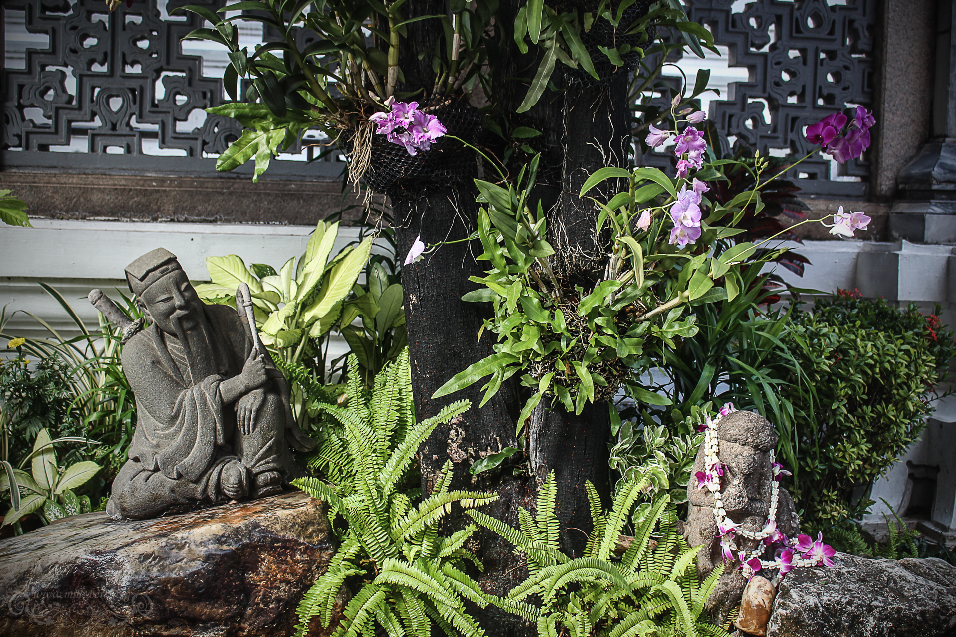La verdure est aussi de la partie et tandis que je tente de photographier des fleurs, voilà que je me retrouve complètement arrosée par le jardinier. On ne crache pas sur un peu de rafraîchissement par ce climat qui nous fait excessivement transpirer 🙂