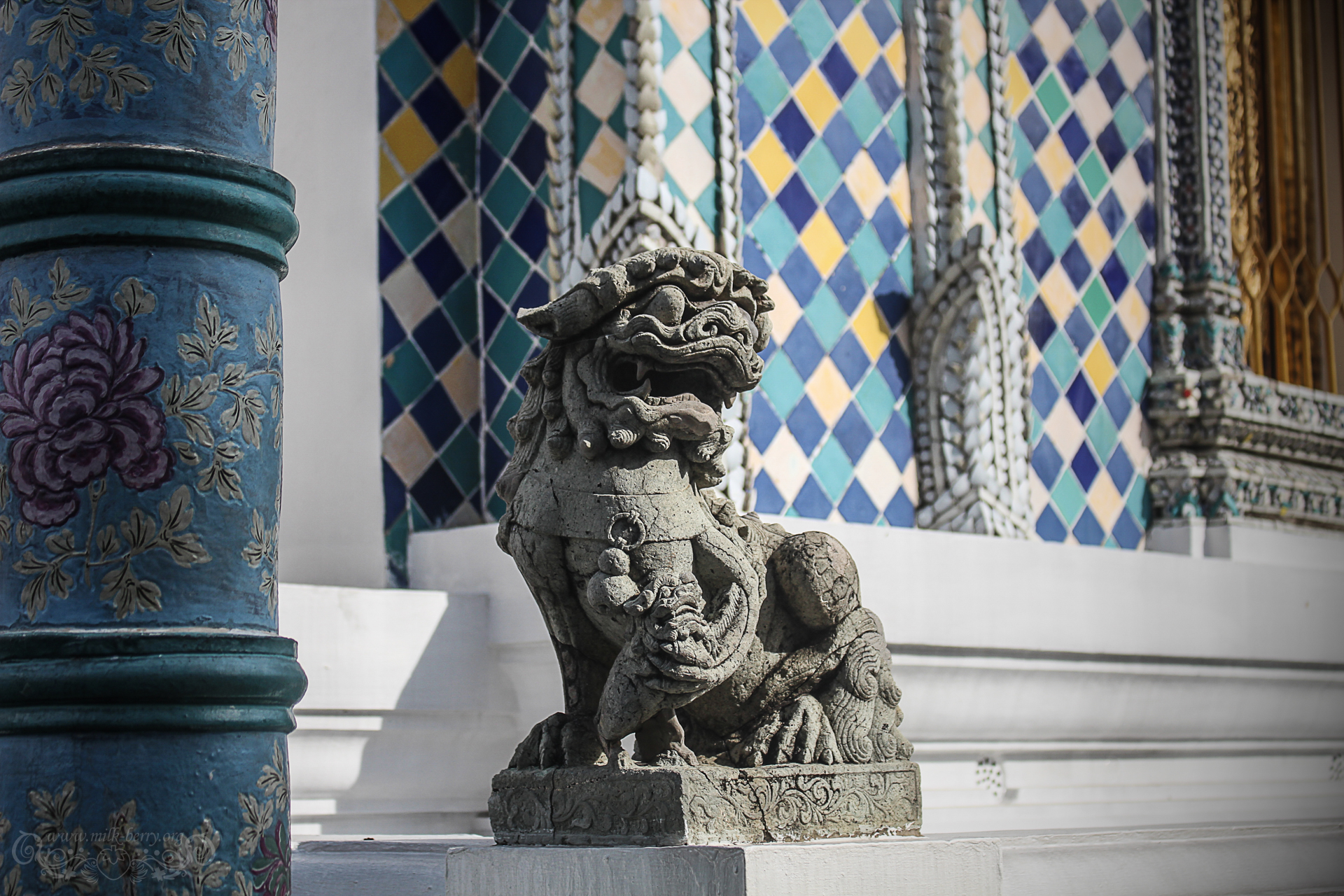 Le monument est impressionnant, rempli de détails et de finesse comme toujours en Thaïlande. Il est bordé d’eau et de statues d’animaux divers – y compris des animaux fantastiques, licornes, éléphants sirènes, … Une fois de plus, c’est assez kitch, mais ça fait partie du charme !