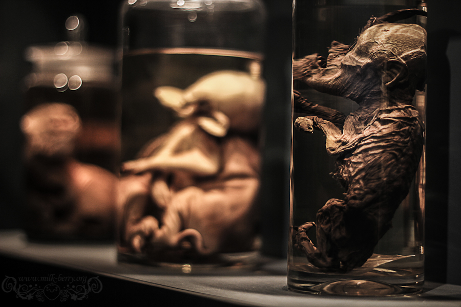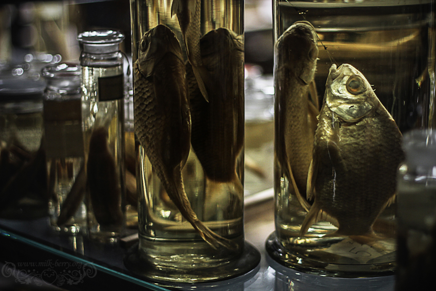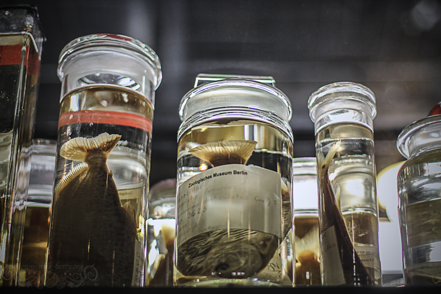 Mais ce qui reste le plus impressionnant dans le musée est sans doute l’immense collection d’animaux marins, reptiles et autres conservés dans des tubes ! Tout est présenté sur d’immenses étagères montant jusqu’au plafond et remplie de spécimens divers, au centre de la pièce, à travers de grandes vitres protectrices. On peut voir à travers que la collection se poursuit sur des étagères en métal, non accessibles au public.