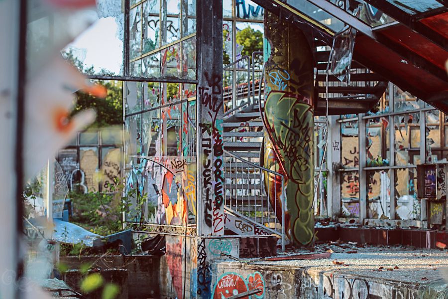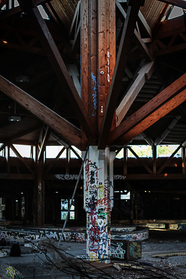 Impossible de partir en voyage à Berlin sans décider de visiter quelques lieux abandonnés. C’est par le Blub que nous commençons, situé non loin de notre hôtel. Énorme complexe aquatique ouvert en 1985 et à la base très populaire, les fréquentations de ce lieu ont vite baissé, en partie car il était assailli par des gangs de jeunes qui en avaient fait leur territoire, mais aussi surtout car il a été envahi par… Les rats ! On imagine bien que l’idée de se baigner en compagnie de ces charmants rongeurs, ce n’est pas très vendeur. C’est en 2005 que les lieux ferment définitivement leurs portes.