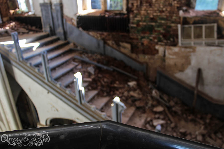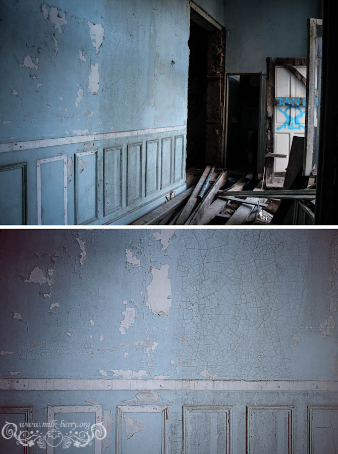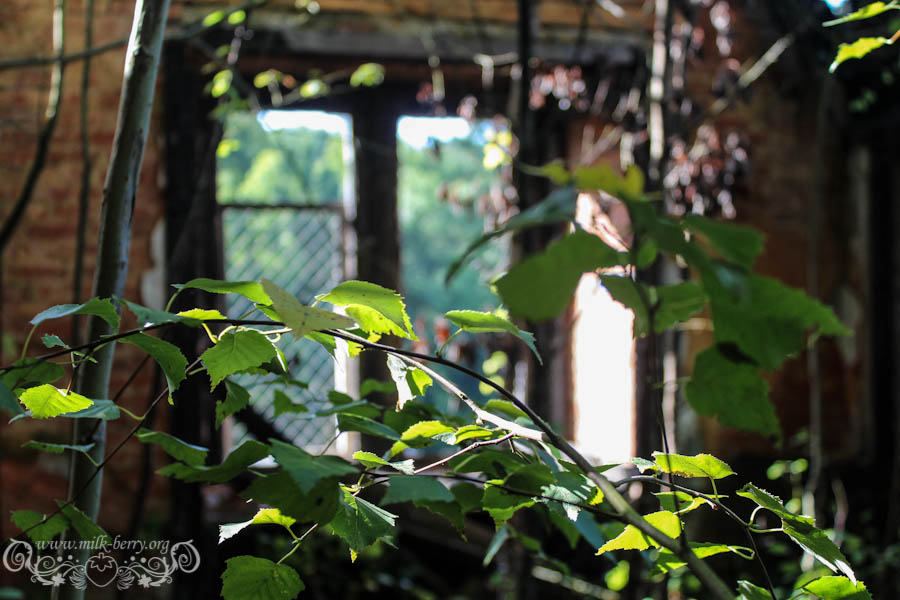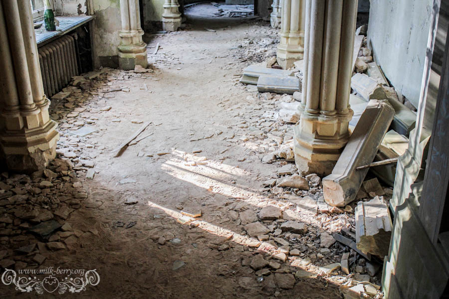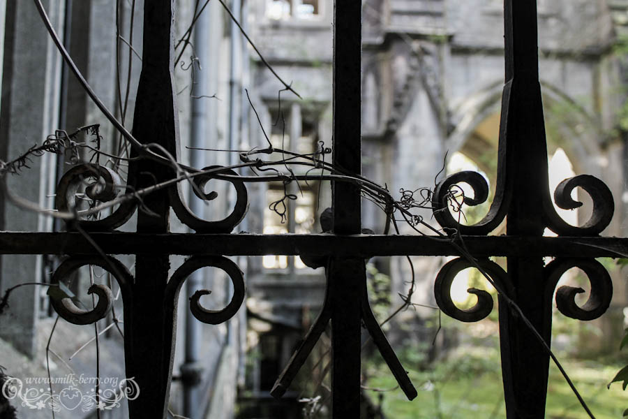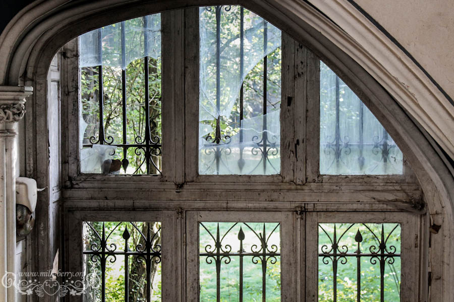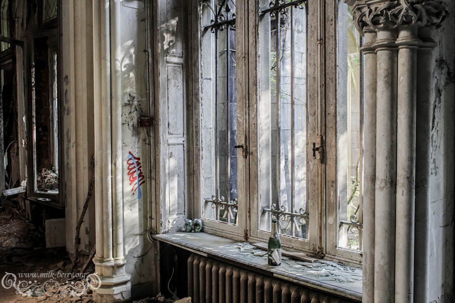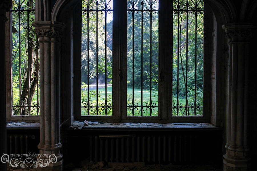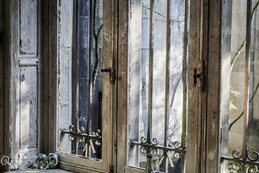 On est arrivés à la bonne heure, la lumière qui filtre confère au lieu une ambiance magique, dans nos têtes on s’imagine ce que ça devait être à l’époque, lorsqu’il était encore en état avec son escalier de marbre, ses voûtes et ses plafonds peints de bleu. Je me découvre un côté princesse, à m’émerveiller à chaque nouvelle découverte, chaque pièce, fenêtre ou petit détail me met des étoiles plein les yeux et avec Julia, on s’exclame en chœur « Que c’est beauuuu ! »