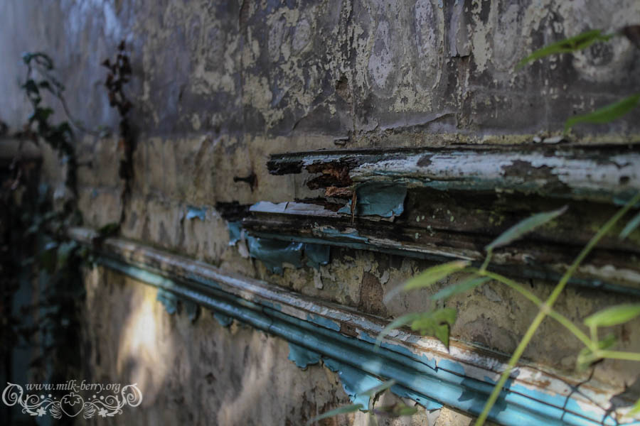 On est arrivés à la bonne heure, la lumière qui filtre confère au lieu une ambiance magique, dans nos têtes on s’imagine ce que ça devait être à l’époque, lorsqu’il était encore en état avec son escalier de marbre, ses voûtes et ses plafonds peints de bleu. Je me découvre un côté princesse, à m’émerveiller à chaque nouvelle découverte, chaque pièce, fenêtre ou petit détail me met des étoiles plein les yeux et avec Julia, on s’exclame en chœur « Que c’est beauuuu ! »