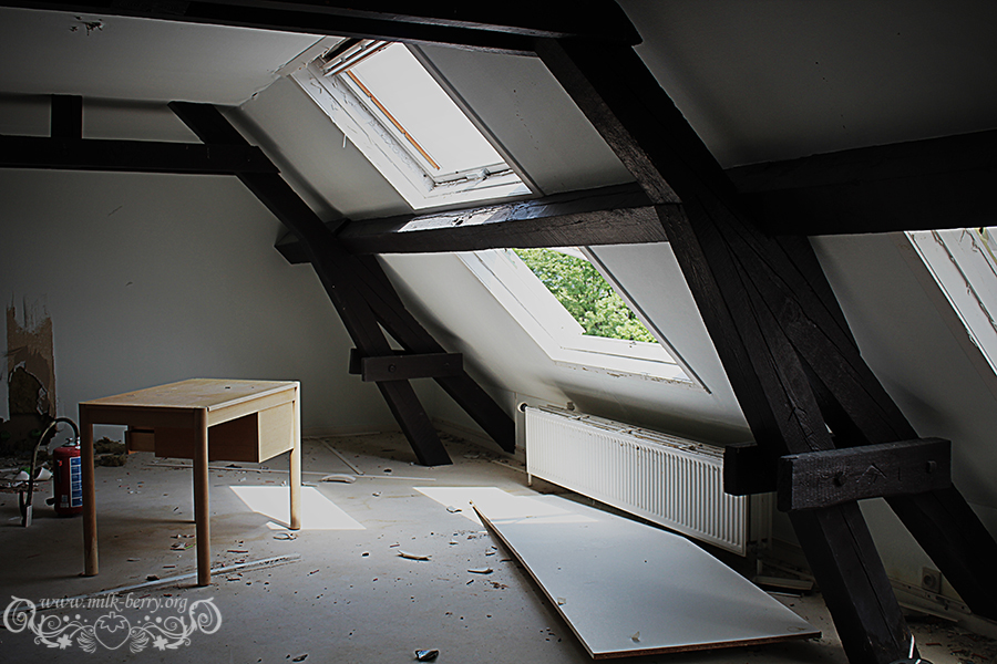 Le grenier bien qu’assez vide, était assez plaisant à visiter aussi, avec sa chaise abandonnée là et les rayons de lumière qui venaient tapisser d’anciens papiers…