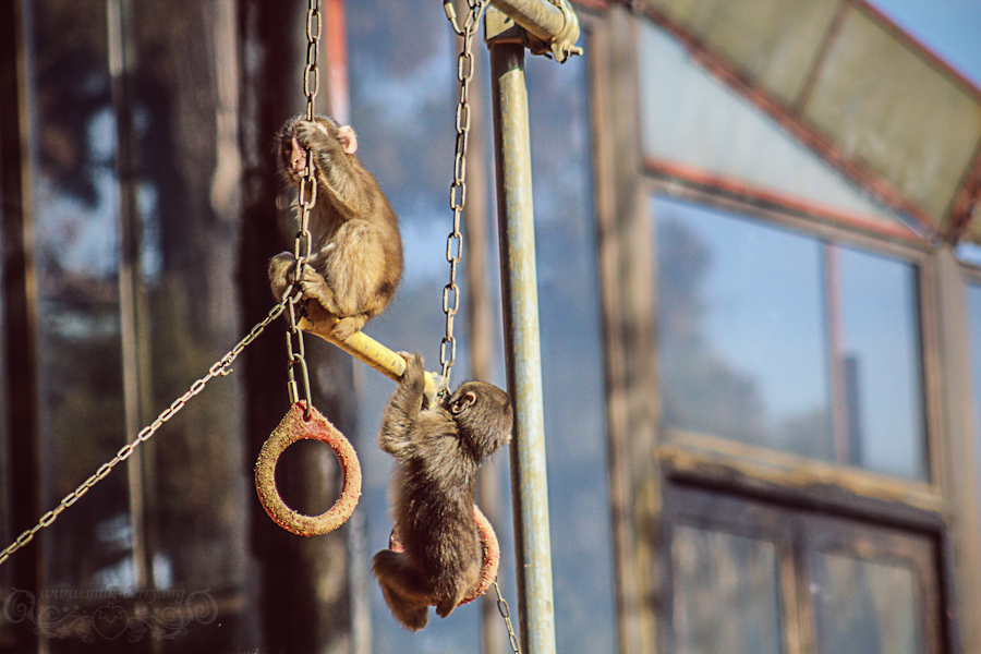 Arrivée en haut, je demande un plan et m’arrête au Parc des singes. En réalité il n’en vaut pas vraiment la peine : je pensais qu’il s’agissait peut-être d’une sorte de réserve ou parc où les singes sont en liberté, mais ils sont enfermés dans un grand enclos où on peut les observer soit à travers la vitre, soit du dessus en montant sur une plate-forme.