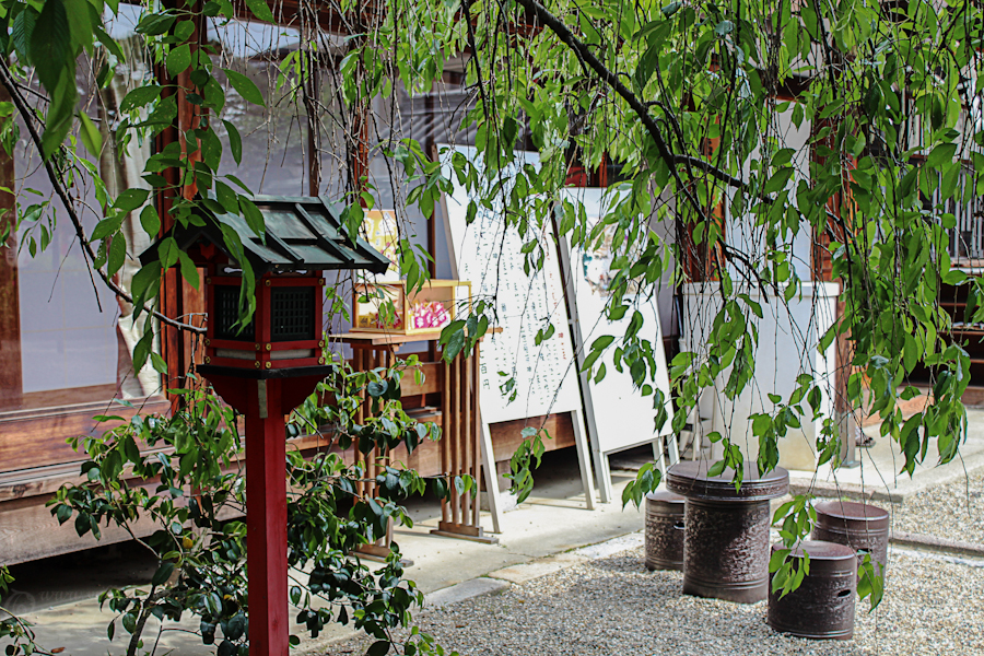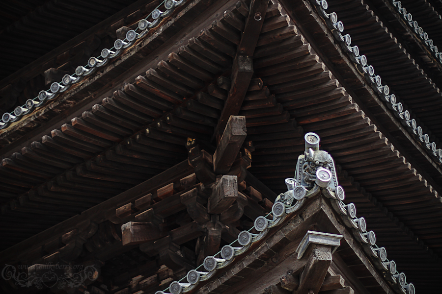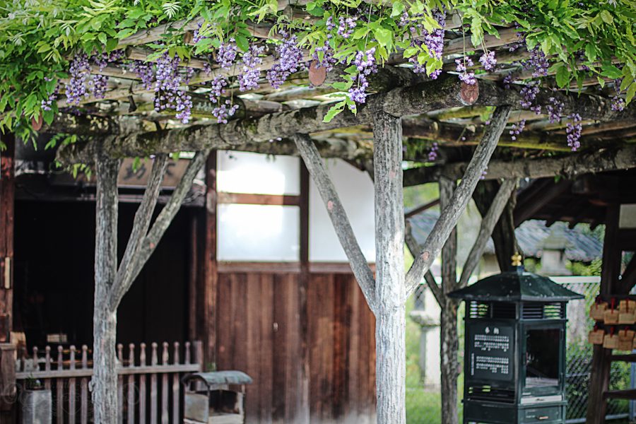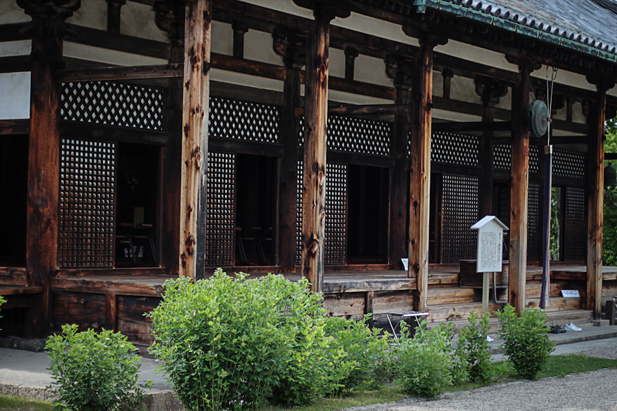 On reprend la route en quête du Gangō-ji et face à une petite pancarte en bois indiquant le temple tout droit, on s’enfonce dans un minuscule chemin.