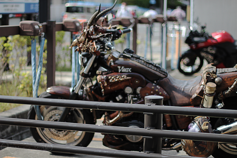 En partant vers le Kōfuku-ji, on tombe sur une moto mortelle. Des crânes, de la décoration western, ça tue !