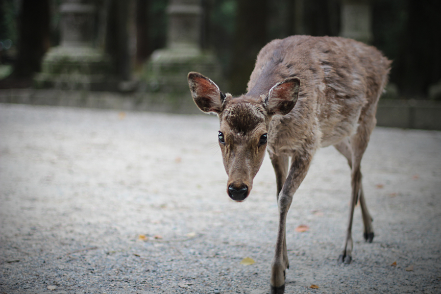 La légende raconte qu’un dieu, Takemikazuchi, serait un jour apparu à Nara sur un grand cerf blanc… Depuis lors, la population locale considère le cerf comme un animal sacré et cela fait des décennies qu’ils sont traités dans le plus grand des respects. Inenvisageable chez nous !