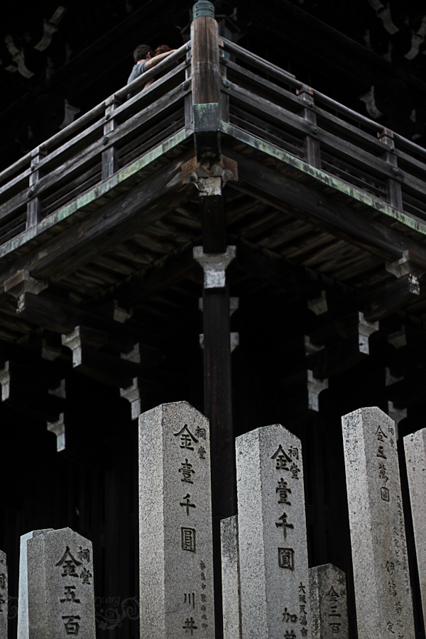 On monte donc vers le Nigatsu-dō pour observer le coucher de soleil sur la ville. Malheureusement, aujourd’hui, le ciel est couvert, les jolies couleurs ne seront pas pour cette fois ! On se pose tout de même pour observer la vue, silencieusement.
