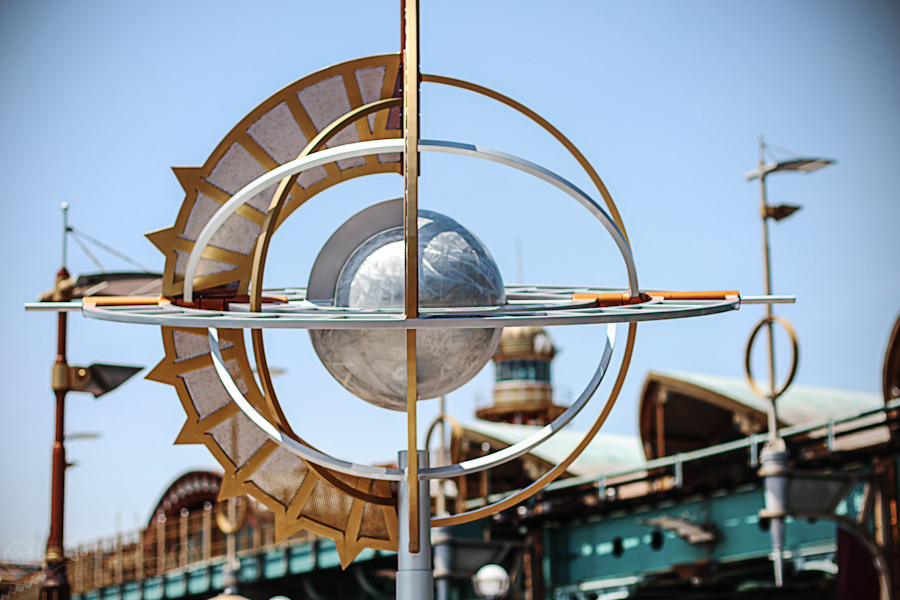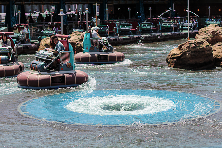 On s’essaye à l’attraction Aquatopia qui a l’air rigolote : il s’agit juste de petits bateaux qui suivent un parcours prédéfini, tournant sur eux-même et longeant des faux tourbillon, puis on s’arrête pour boire un coup en observant les oiseaux qui picorent des pop-corns, mais non sans avoir testé l’attraction StormRider ! Je n’ai pas de photo de cette dernière, c’est une simulation où on embarque à bord d’un vaisseau de chasseur de tempête, notre but étant d’en détruire une. Un peu similaire à l’attraction Star Wars de Paris, mais en plus prenant : on ne s’attendait pas à ce que, pris dans la tempête et plongeant dans la mer, on se fasse réellement éclabousser :)) En tout cas, les effets spéciaux sont bien foutus et on s’y croirait vraiment, secoués dans tous les sens !