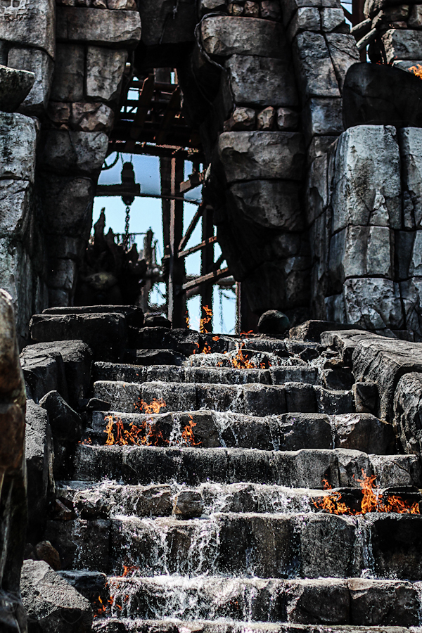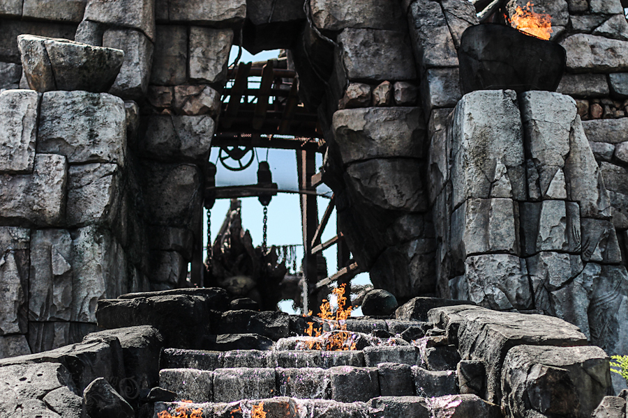 Quant à l’attraction en elle-même… Que dire si ce n’est « waouh ! » ? C’est probablement la plus poussée du parc. Les décors sont superbes, les marionnettes articulées (monstres et autres créatures) aussi, clairement c’est une claque dans la gueule. Dommage que le temps d’attente était relativement long (30-40 minutes), sinon, on l’aurait bien refaite. Arrivés au bout du parcours, je m’interroge : on a vu une attraction qui passait par le volcan et projetait les wagons un peu façon Space Mountain… Mais ça ne semble pas être celle-ci, laquelle est-ce alors ? Et c’est là qu’après un voyage tout calme, le wagon accélère brutalement pour nous projeter. Ok, on était donc bien dans la bonne attraction et ils sont fourbes de faire un truc pareil quand tu ne t’y attends pas :))