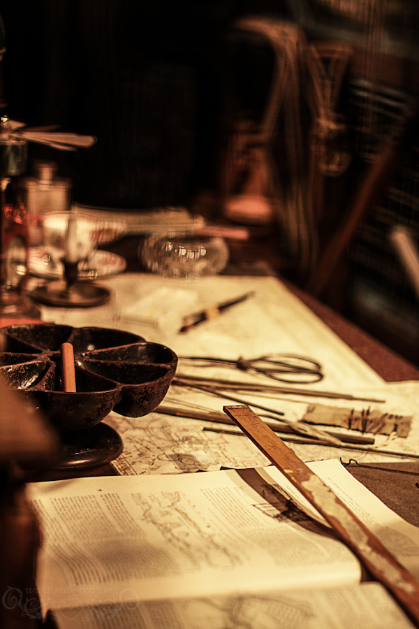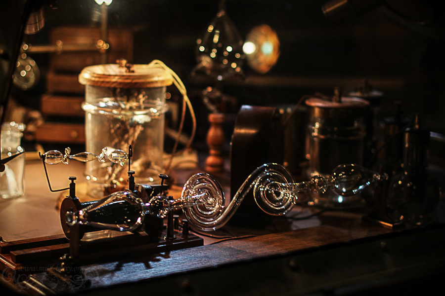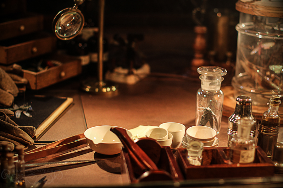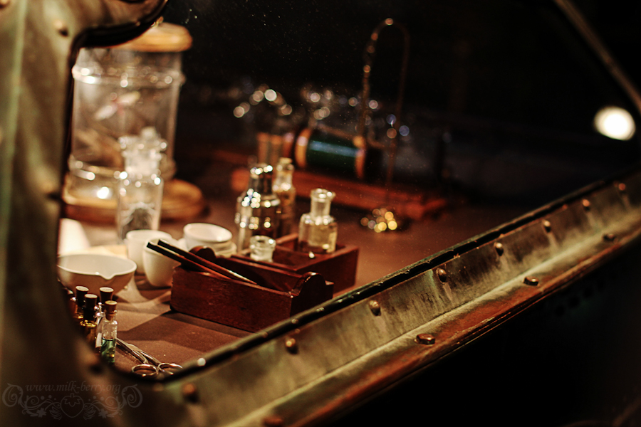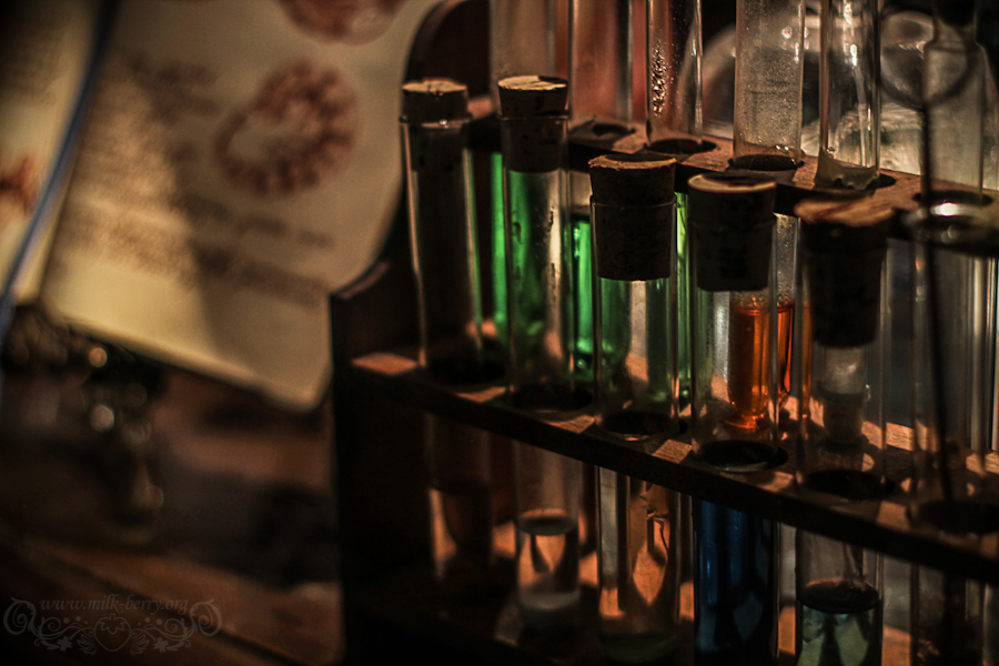 On se lance donc dans le Voyage au centre de la terre ! La décoration est là pour nous faire patienter dans la file d’attente, avec laboratoire de recherches et autres ateliers. Fioles, livres et diverses choses étranges sont au rendez-vous.
