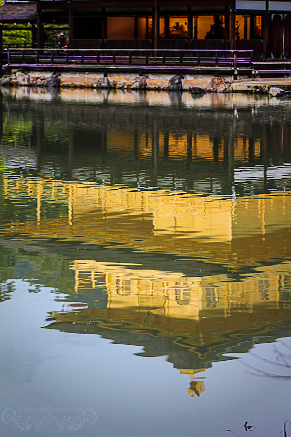 Arrivée à mi-chemin, je me décide finalement à monter dans un bus jusqu’au temple… Je suis la horde de touristes jusqu’à me trouver face au fameux pavillon qui se reflète élégamment dans l’eau du magnifique jardin qui l’entoure.