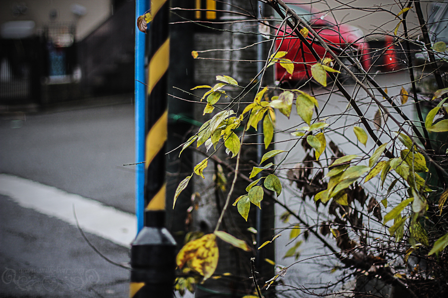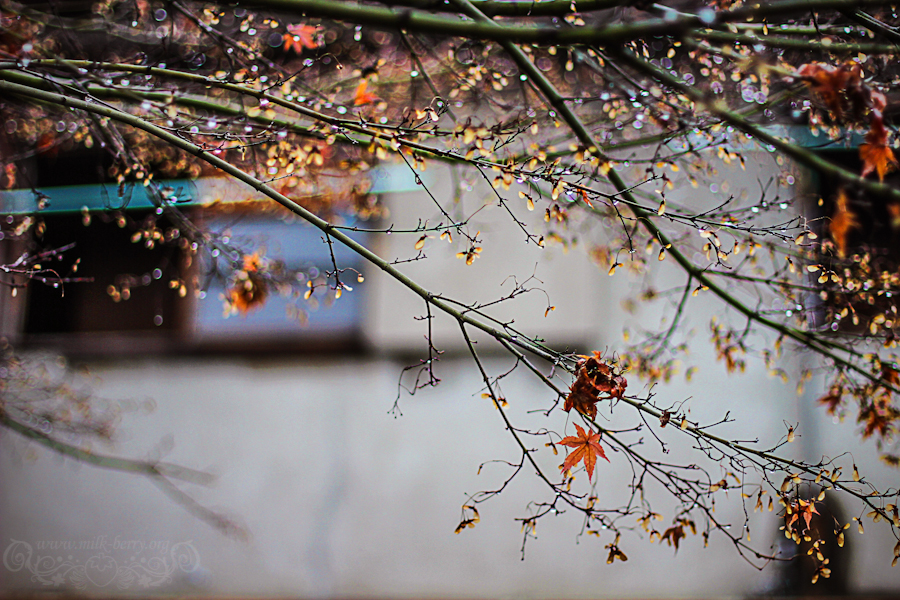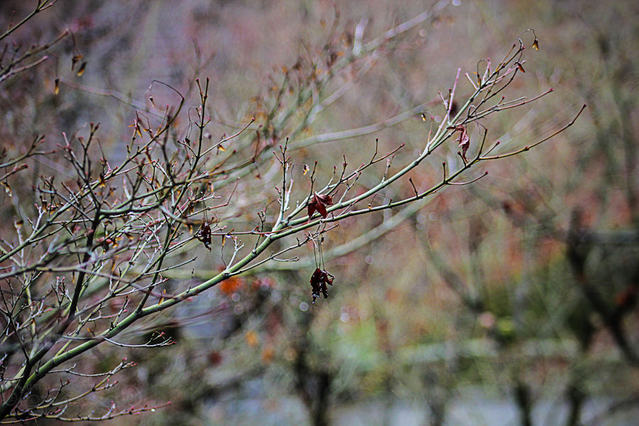 J’aime cette atmosphère où les sols sont rougis par les feuilles mortes tandis que quelques survivantes s’accrochent à leur branche…
