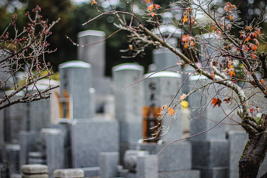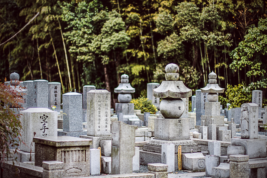 Je me promène dans l’enceinte et débouche sur un cimetière. J’aime vraiment l’architecture des tombes japonaises, placées ici au calme devant une forêt de bambou, nul doute ne fait que les défunts reposent en paix !