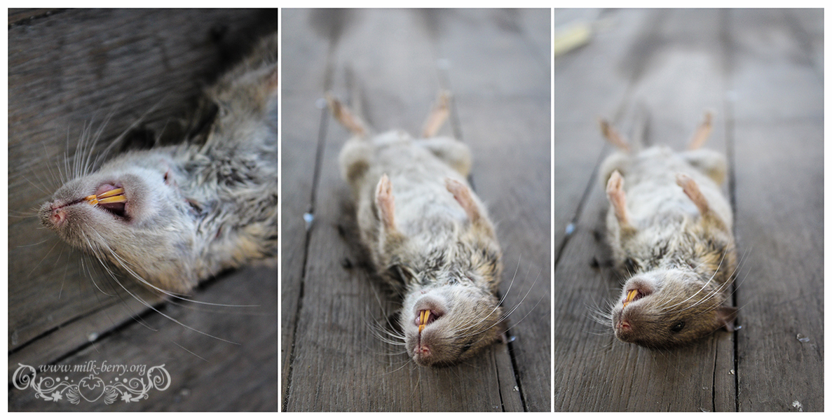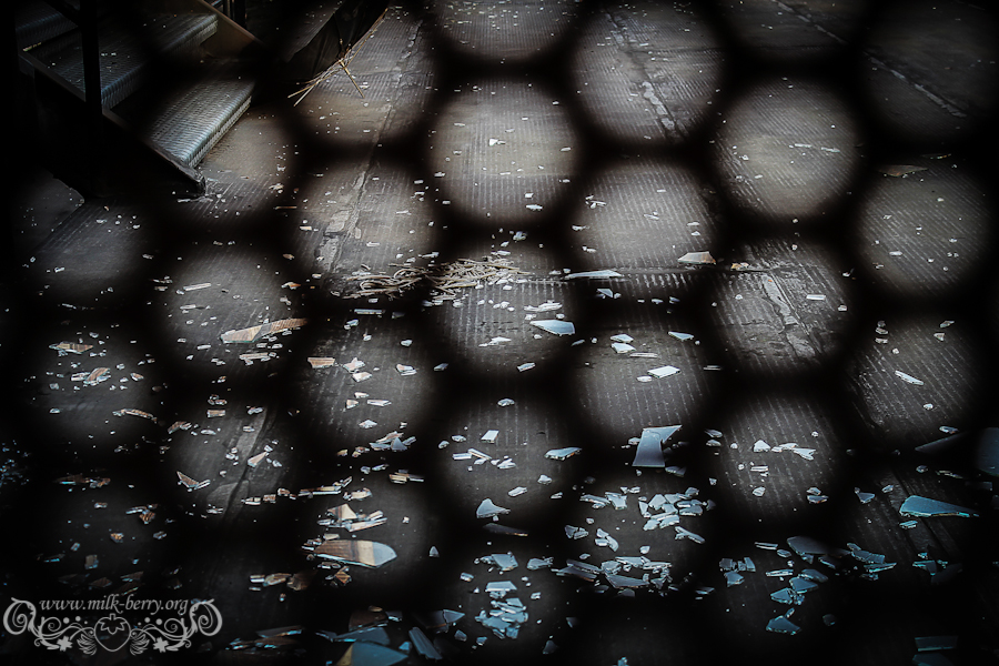 Ni d’une ni de deux, je propose une petite excursion à mes compagnons d’infortune et on se cale un week-end pour qu’enfin, je sache ce qui se cache derrière ces fenêtres ! On arrive par la salle de spectacle où se dresse une énorme scène et où nous sommes accueilli par un rat mort… Il m’a fait un peu de peine, avec sa petite langue qui dépasse, visiblement tué par un chat.