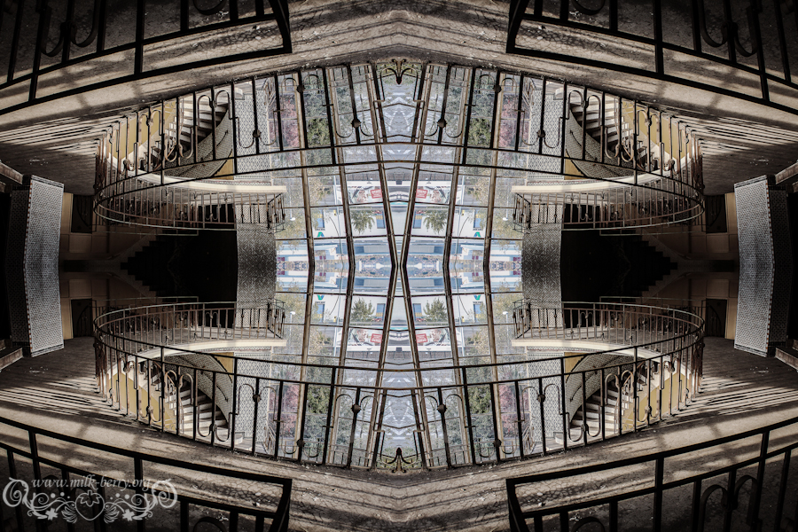 Je me suis également amusée à quelques montages psychédéliques, l’aspect géométrique des lieux s’y prêtant plutôt bien…