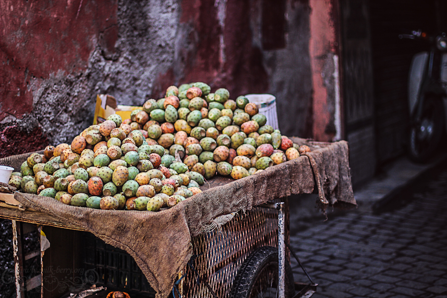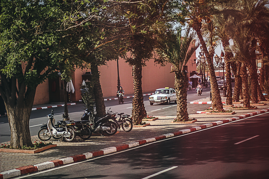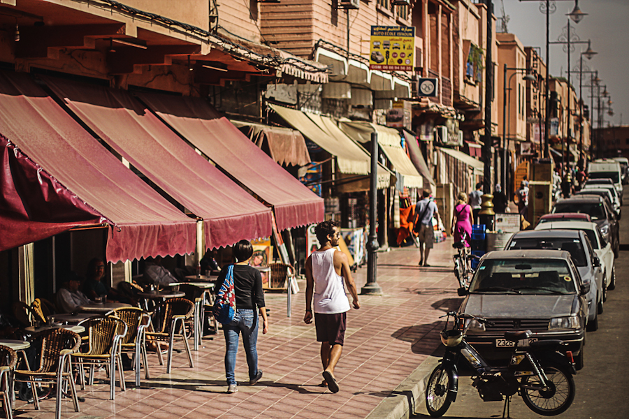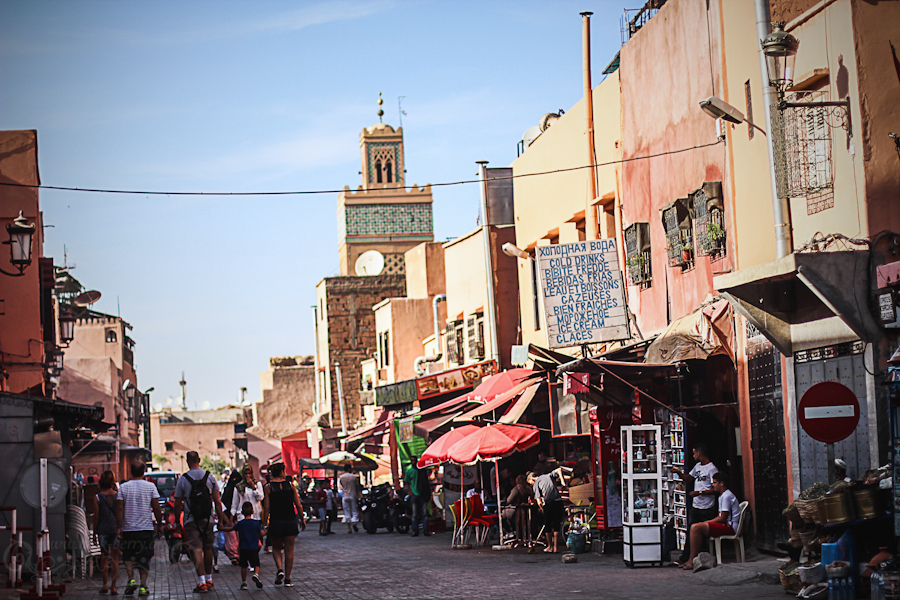 Nous passerons également par la place Jemaa-el-Fna après avoir dégusté une délicieuse tajine dans un petit restaurant local. Réputée pour ses nombreux stands et attractions, c’est surtout le soir qu’elle vaut la peine d’être vue : bien qu’il y ait tout de même diverses échoppes et autres charmeurs de serpents, les restaurants ambulants ne sont pas encore installés. Les jus de fruits frais sont au rendez-vous, on évitera cependant d’y goûter après des témoignages concernant les risques de chopper la tourista 🙂