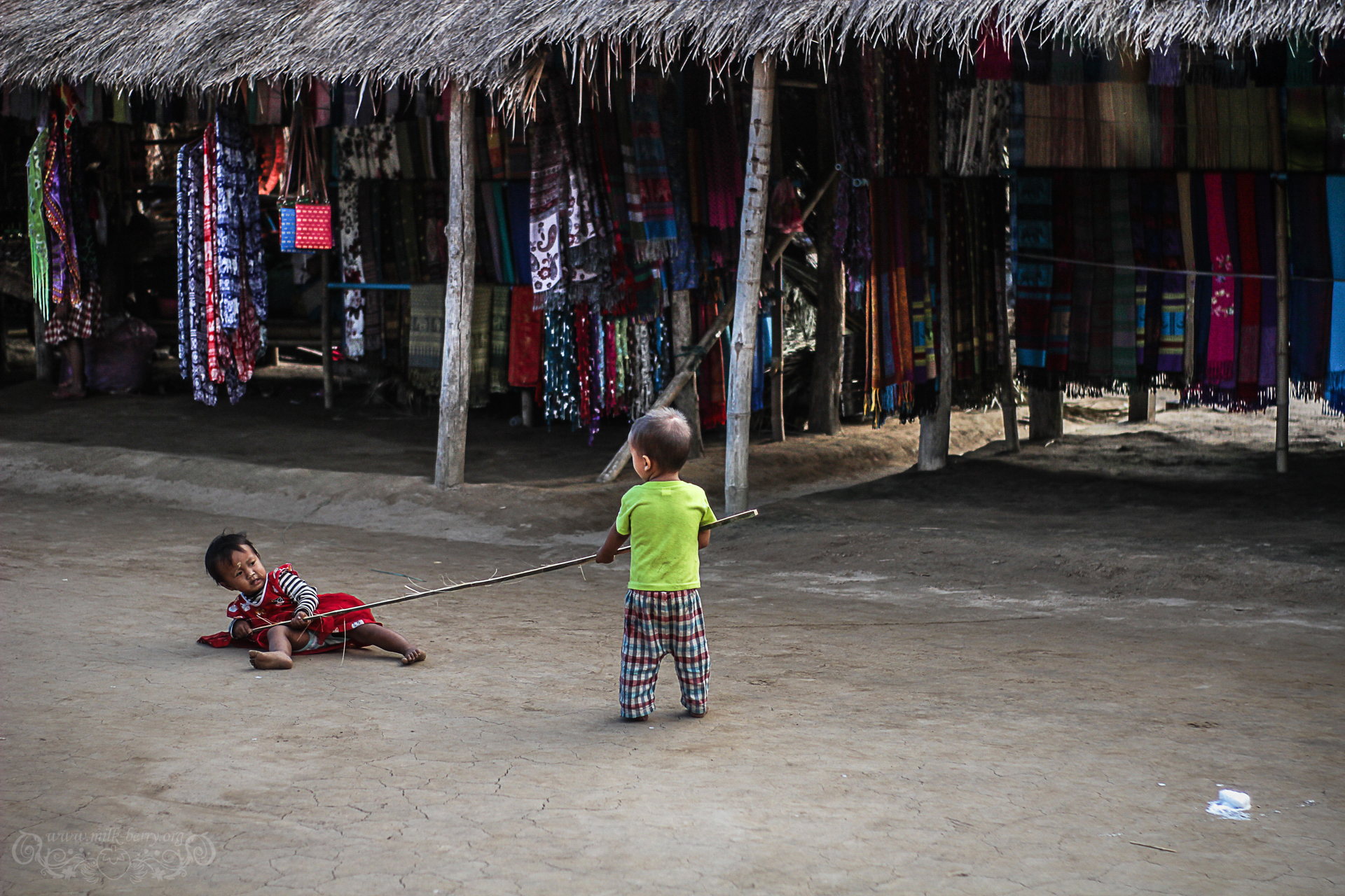 Et nous y trouvons un village tout ce qu’il y a de plus « normal ». Les enfants gambadent et jouent avec les animaux, tandis que les femmes s’exposent derrière leur stand de vente ou tissent leurs étoffes. J’aurais aimé discuté avec ces femmes de leur parcours, leur expérience de vie incroyable, mais ma timidité et la barrière de la langue m’en empêche. À la place, nous discutons par l’intermédiaire de notre guide. Elle nous avoue qu’elle se fait souvent incendier de proposer une telle excursion, nombreux sont les touristes qui s’offusquent et trouvent que cela manque d’éthique.
