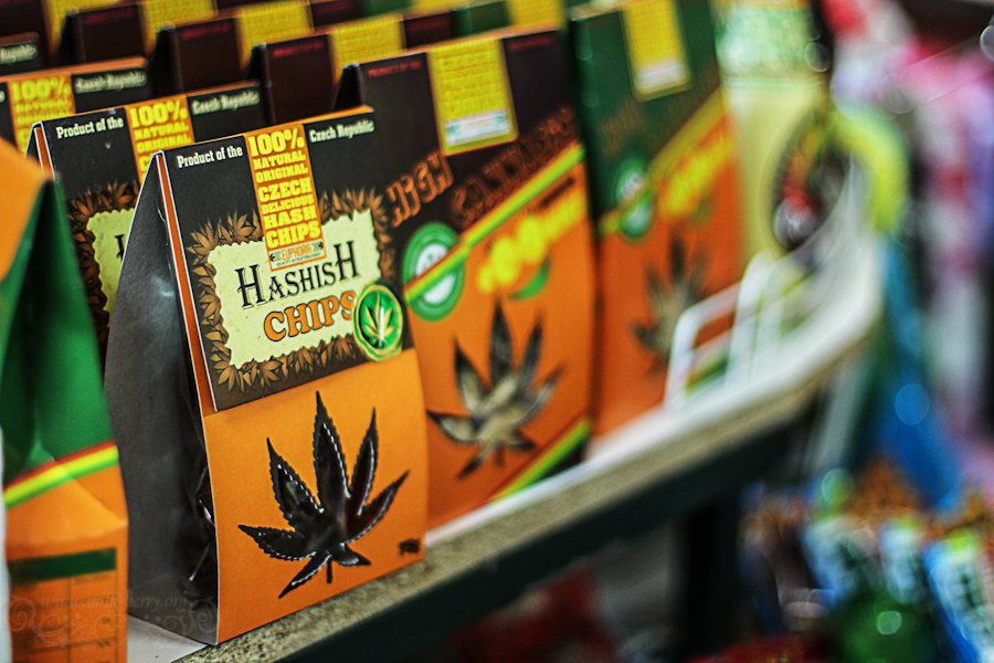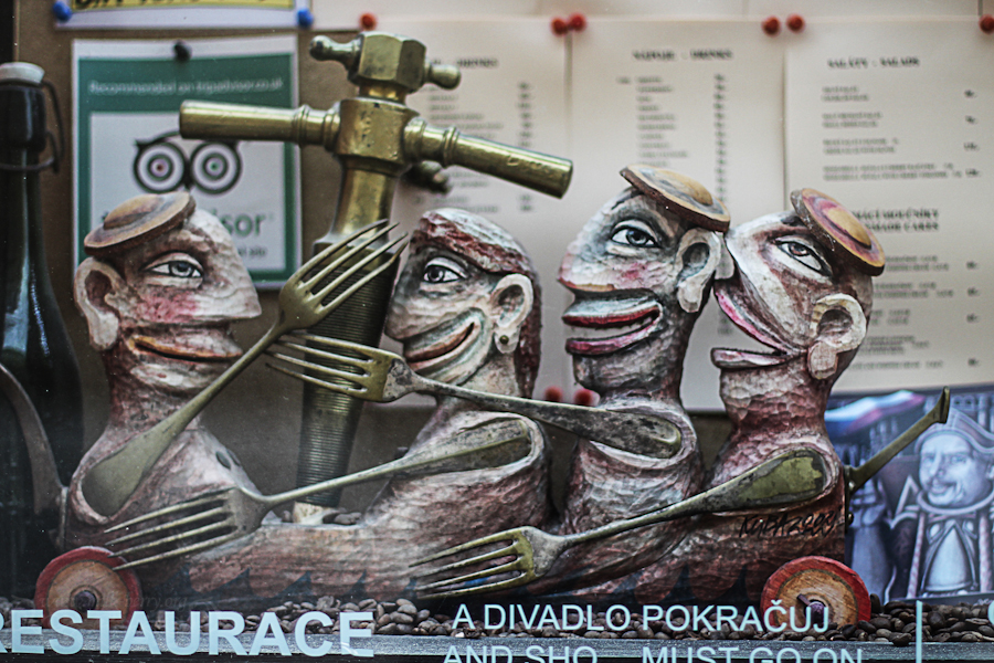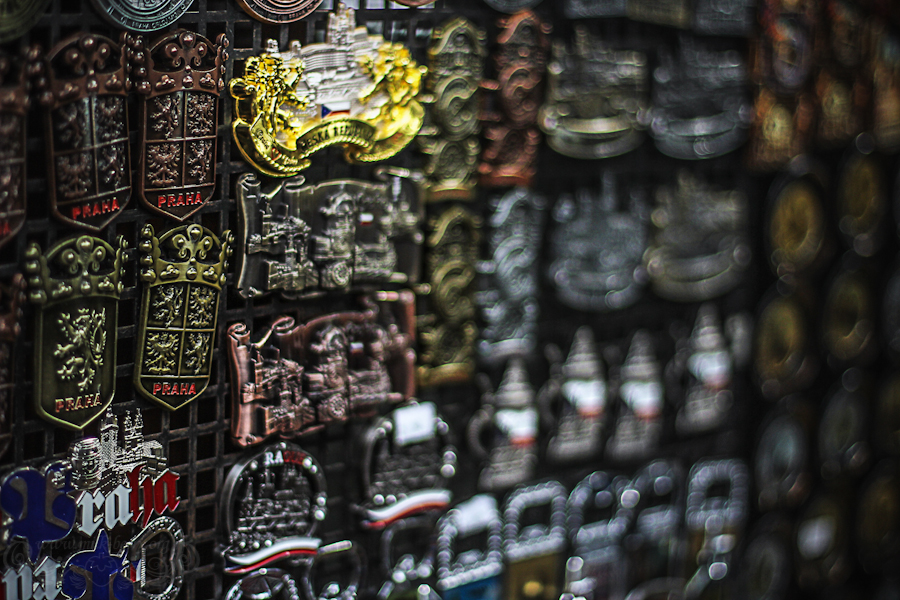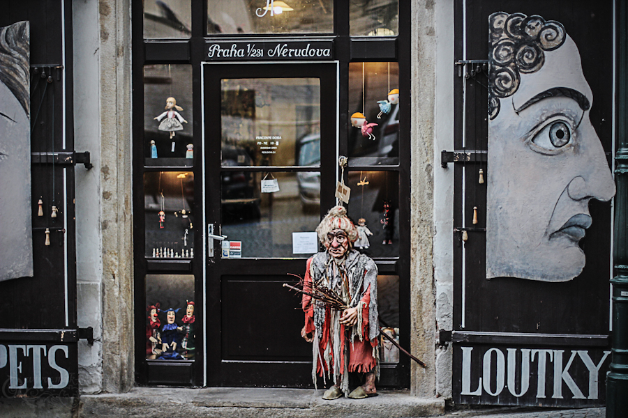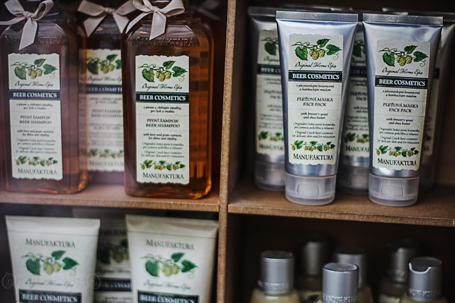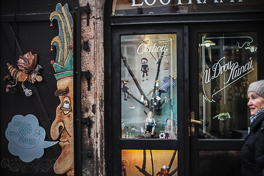 En reprenant la route vers la ville, mes parents comme mon frère et sa copine avancent trop vite pour nous qui avons envie de prendre notre temps pour visiter les petits magasins ou photographier tout ce qu’on voit, nos routes se séparent donc ici et nous passerons le reste de l’après-midi juste à deux. On commence donc par flâner jusqu’au Pont Charles, appréciant les vitrines pittoresques. À Prague, on aime faire dans le kitsch, entre marionnettes, souvenirs religieux ou friandises au cannabis… On notera aussi les nombreuses vitrines proposant de l’absinthe ou encore une boutique de cosmétique à… La bière !