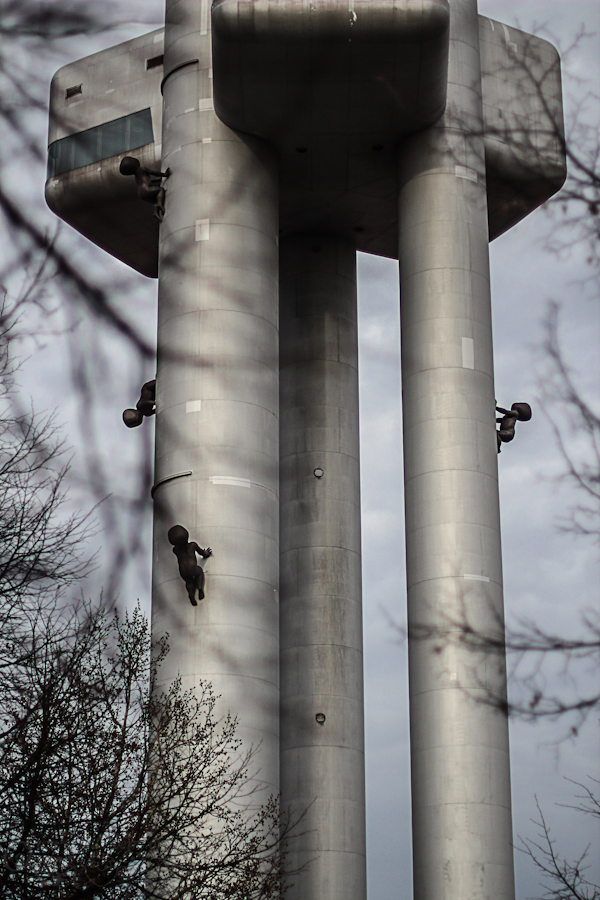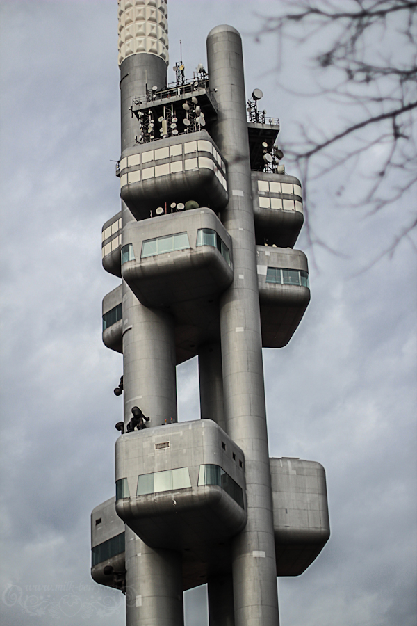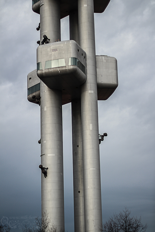 On se met dès lors en quête de ce qui nous intéresse : la tour de télévision ! Elle est impressionnante de par son architecture, mais surtout par ses statues de bébés rampants de David Cerny qui lui confère une allure un peu flippante…