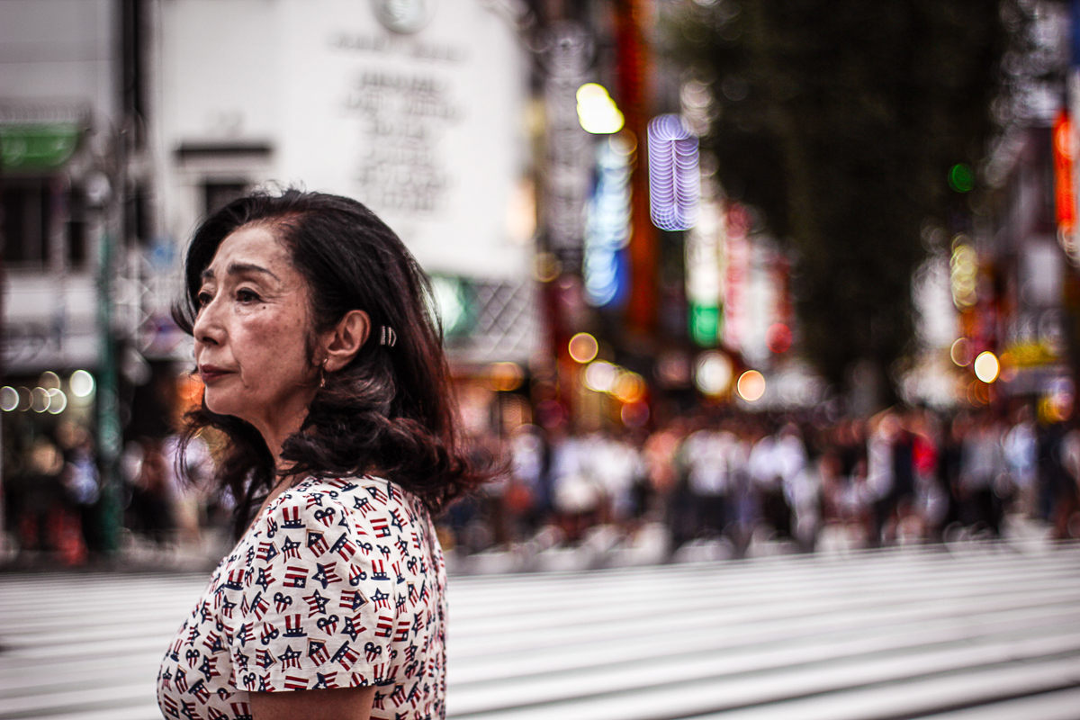 Le Japon compte très peu de sans-abris, mais la plupart dorment sous les ponts de Shinjuku et de Shibuya. C’est surréaliste : du monde partout, et pourtant la solitude… Chaque jour cette dame était là postée sur ses sacs poubelles, comme si elle faisait partie du décor.