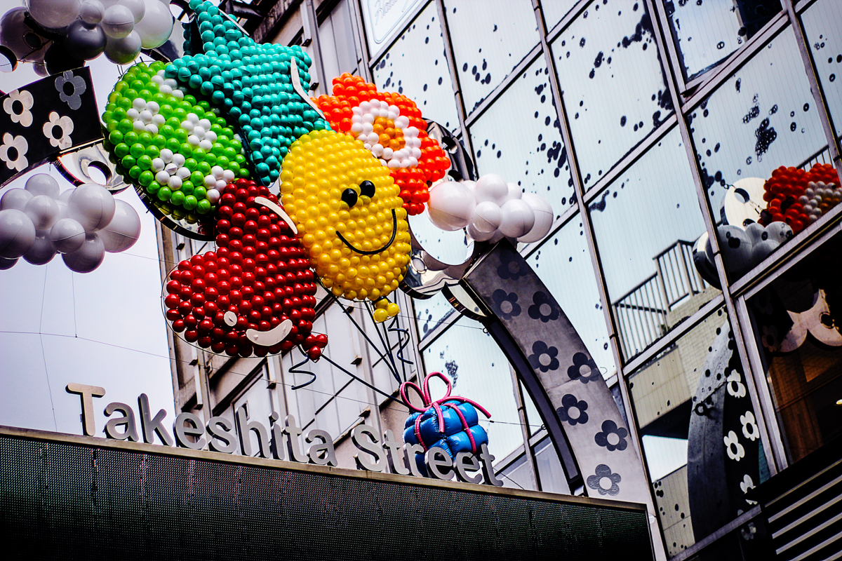 Takeshita-dori est toujours aussi remplie le dimanche. Difficile de se frayer un chemin dans cette foule, mais nous visitons néanmoins les diverses enseignes de mode qui parsèment la rue.