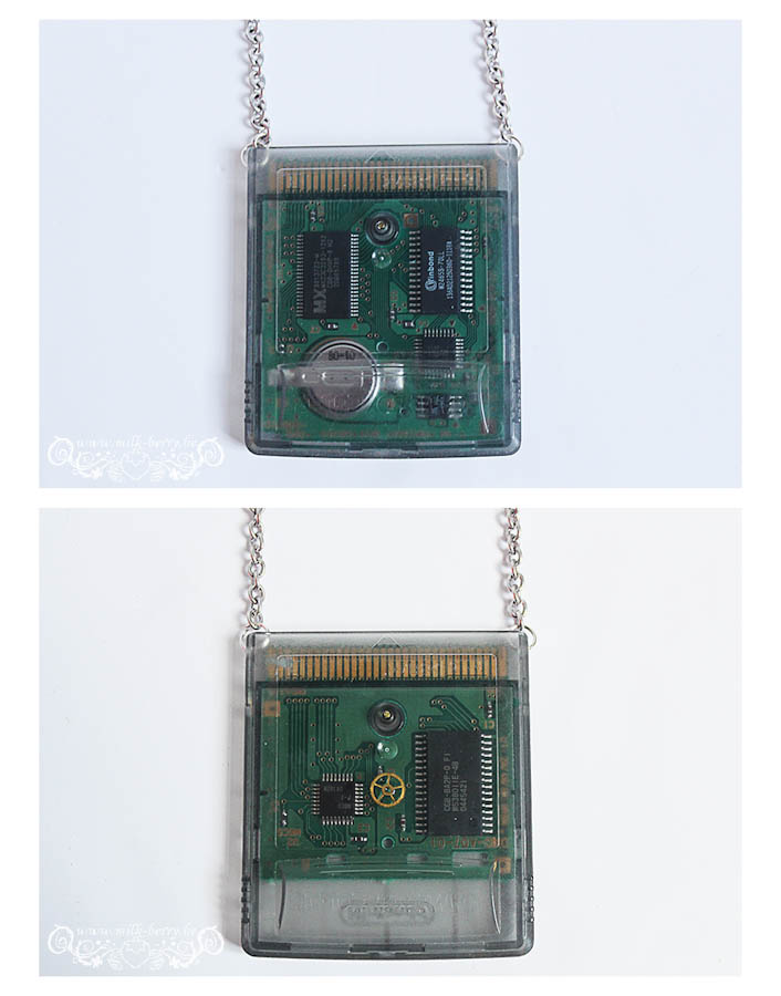 L’idée a émergé alors que les gens s’étonnaient souvent face ma ceinture handmade, présentant mon ancienne Game Boy Pocket cassée gluée sur un rond de tissu, que je portais toujours en convention. Et pourquoi ne pas faire une collection d’accessoires à base de consoles cassées que je customiserais et transformerais ? C’est en janvier que je me suis mise en quête de consoles et cartouches non-fonctionnelles en vue de les démonter.