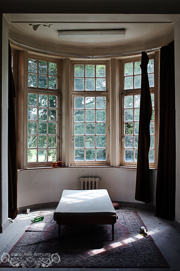 L’endroit est immense et assez impressionnant, il est hélas regrettable que les lieux aient été (comme toujours) énormément saccagés : plus de lits, les lavabos qui jonchent le sol, peu de vestiges dans les chambres qui se succèdent et se ressemblent… Ainsi que quelques mises en scène de précédents photographes qui gâchent parfois le décor lorsque ça a été mal fait ! La moisissure s’est également emparée des lieux, certaines chambres ont le plancher qui croule tandis que d’immenses champignons se sont imposés dans plusieurs recoins.