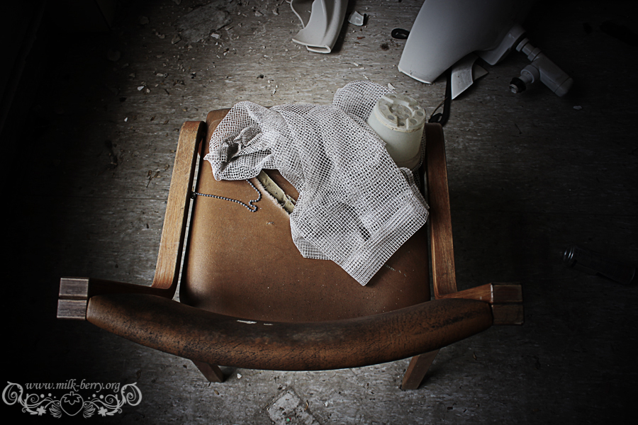 Il y a moins d’indice que je ne le pensais quant au fait que ce fut jadis un hôpital psychiatrique, même s’il reste quelques lits et chaises roulantes typiques, les boutons d’appel encore présents dans certaines chambres, des médicaments qui traînent près du grenier et bien sûr l’obligatoire renversement de seringues dans une pièce.