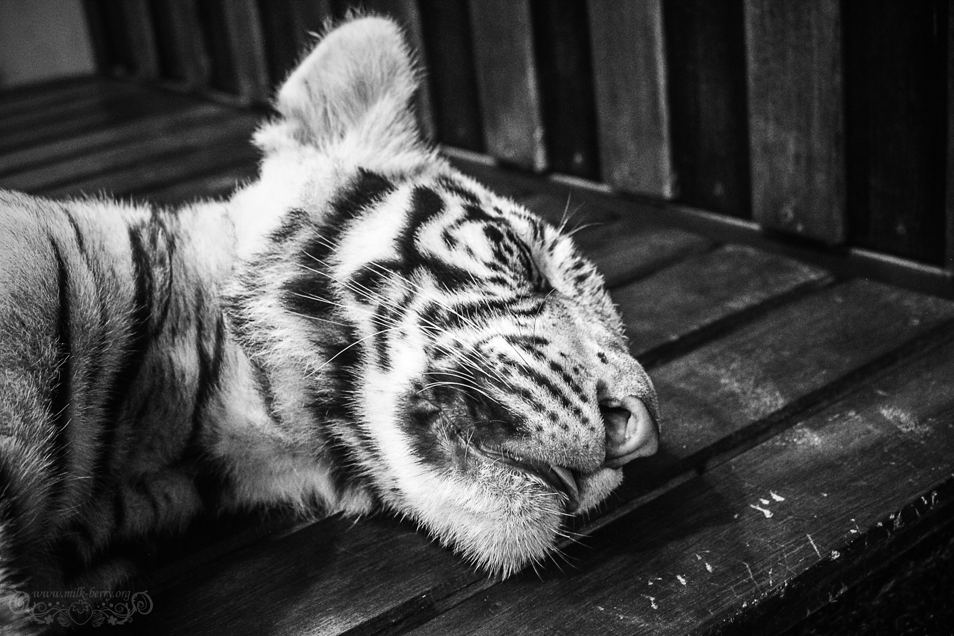 Durant la journée les tigres ont tendance à dormir dans une cave ou sous les arbres pour se protéger de la forte chaleur thaïlandaise. Les tigres dorment naturellement 18-20h par jour. Ils sont aussi des animaux nocturnes, ils sont donc plus actifs la nuit.