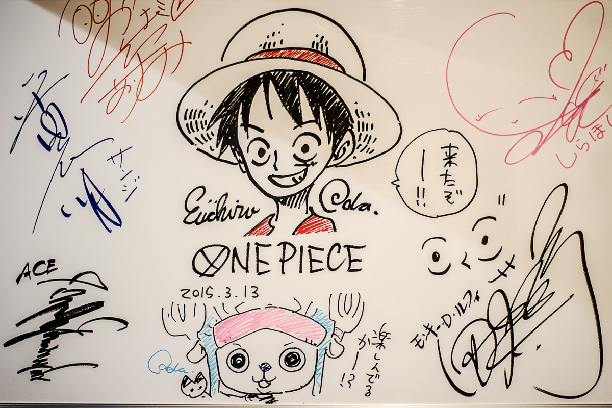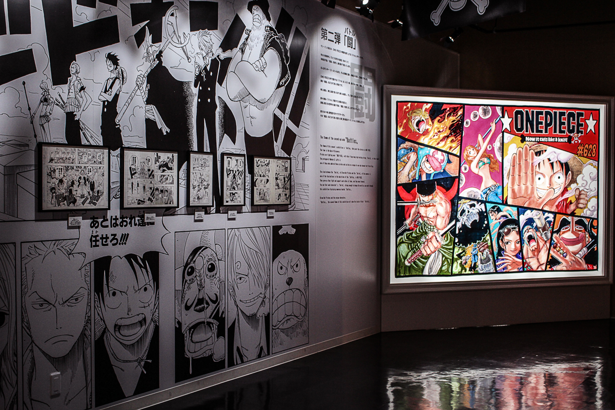 En dehors des attractions, il y a aussi une exposition de planches du manga et de dessins d’Oda.