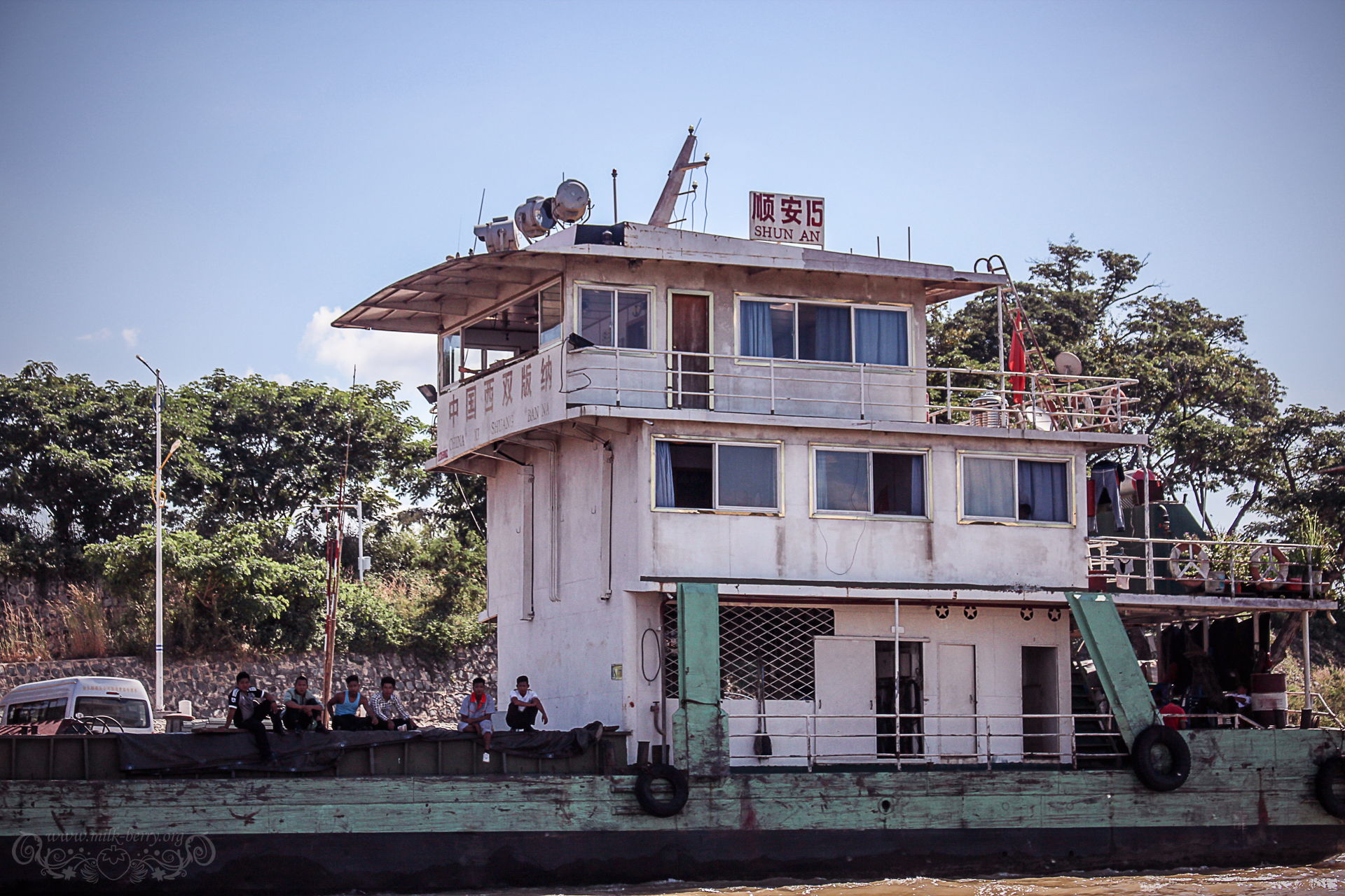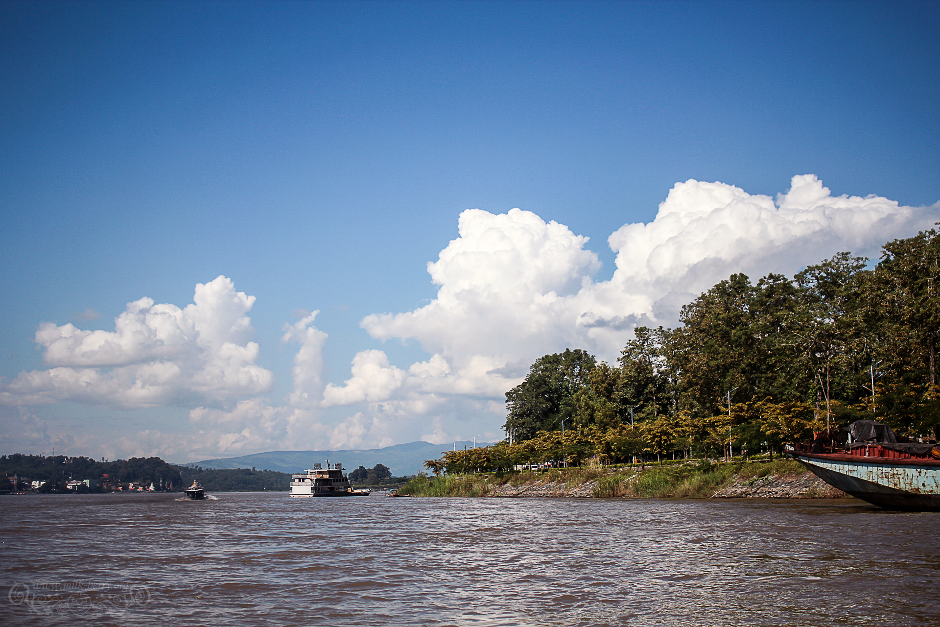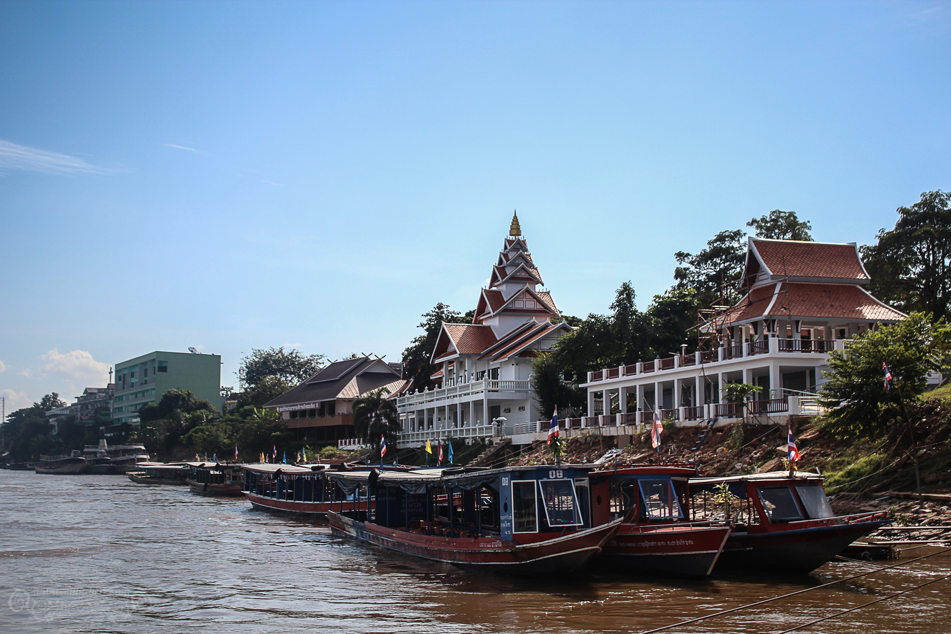 Voici que nous embarquons à bord d’un rafiot pour faire le tour des trois frontières. Le « Triangle d’Or » est ce point de la carte où la Thaïlande, la Birmanie et le Laos se rencontrent.