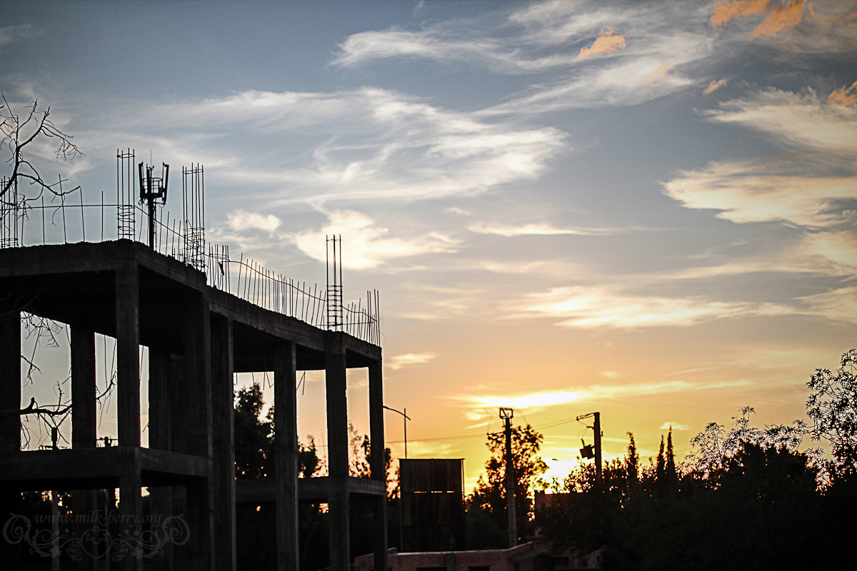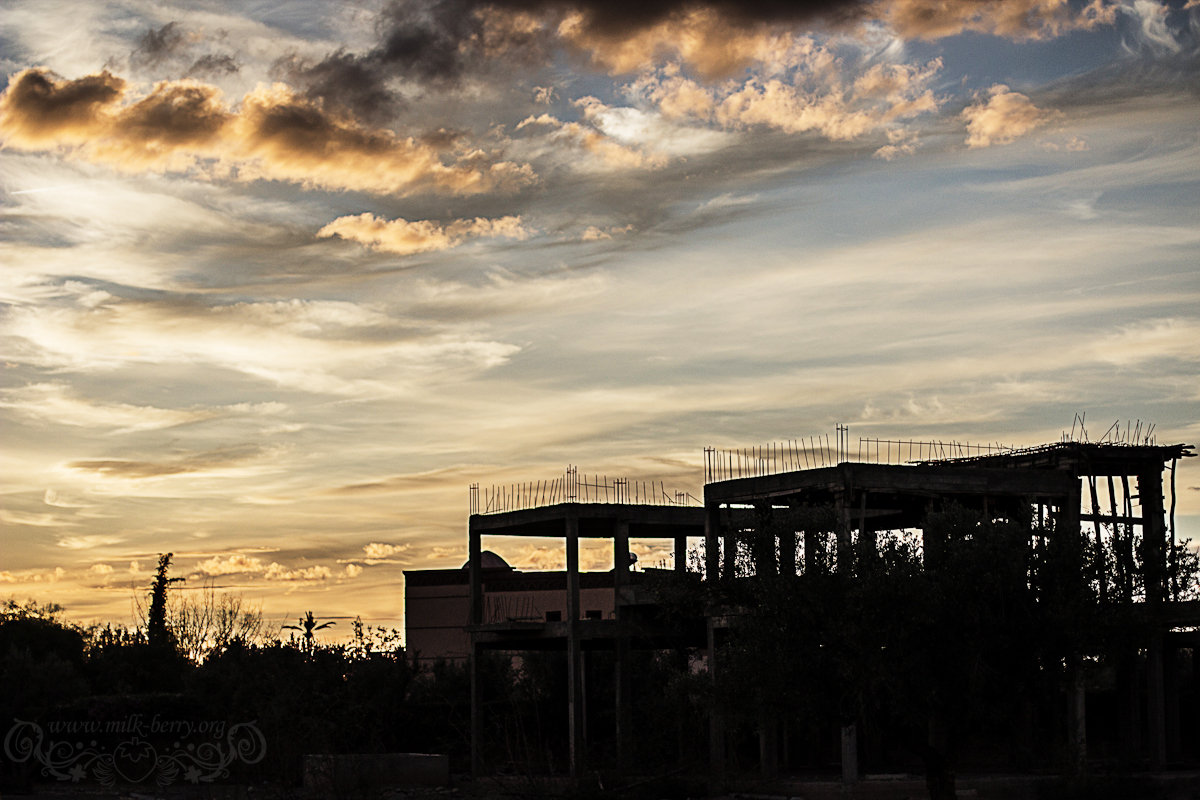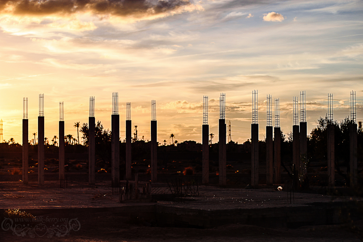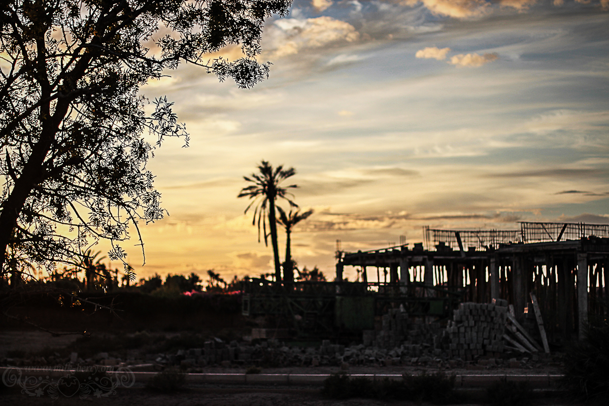 Lors de nos diverses promenades à Marrakech, j’ai pu apercevoir de nombreux bâtiments à l’abandon. Le dernier soir de notre voyage, c’est avec un petit regard de chat potté que j’ai proposé à Monsieur d’aller contempler le coucher de soleil sur un de ces bâtiments situé non loin de notre hôtel.