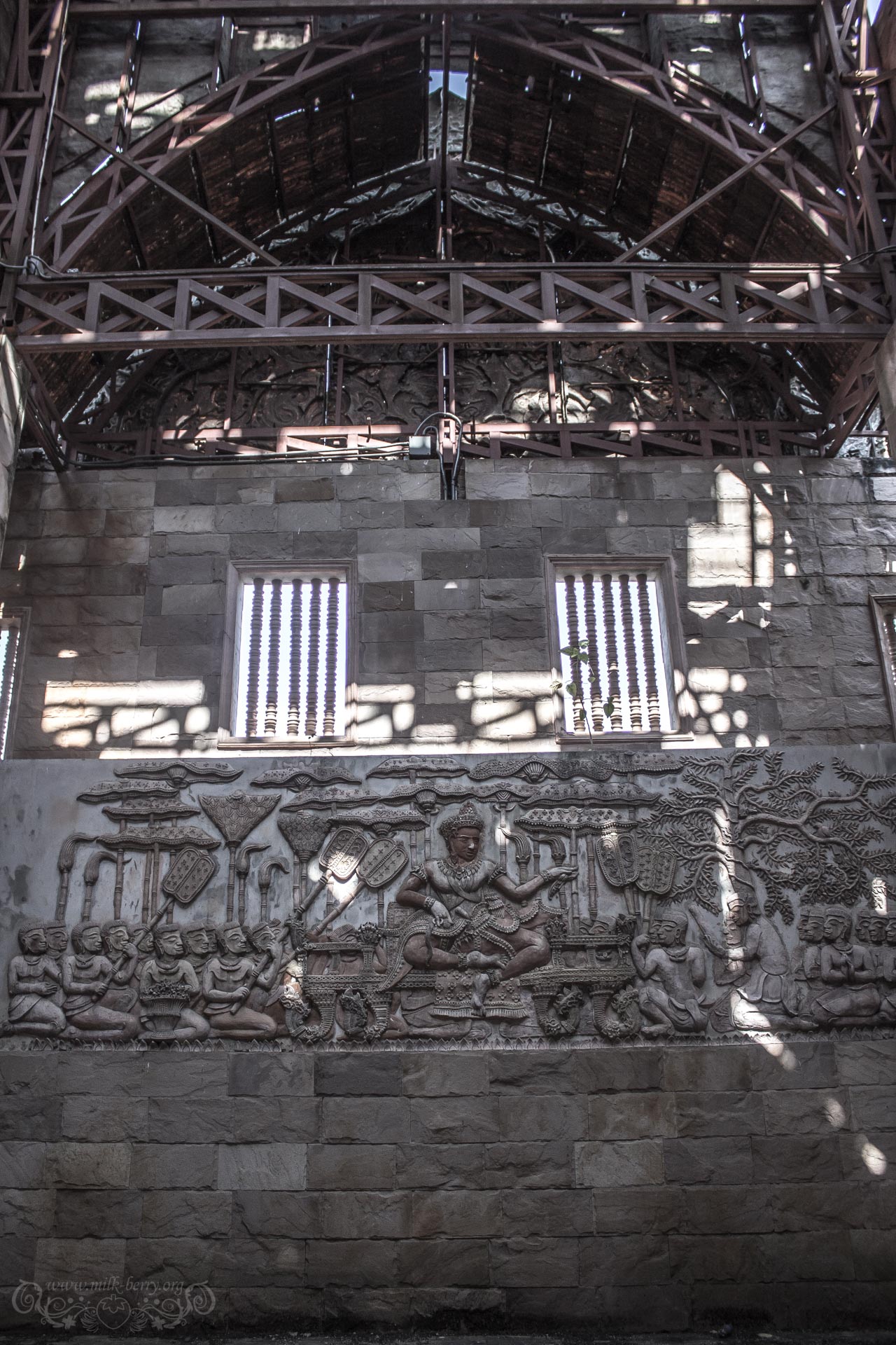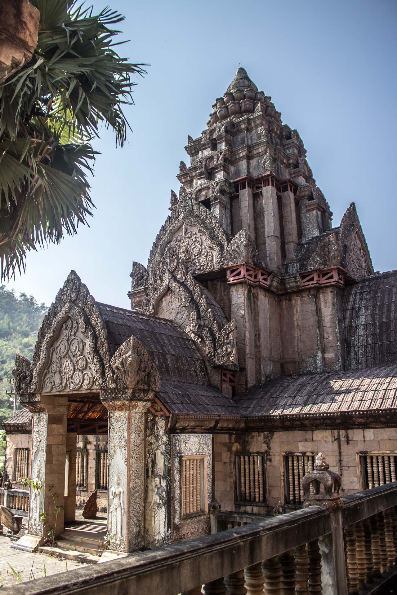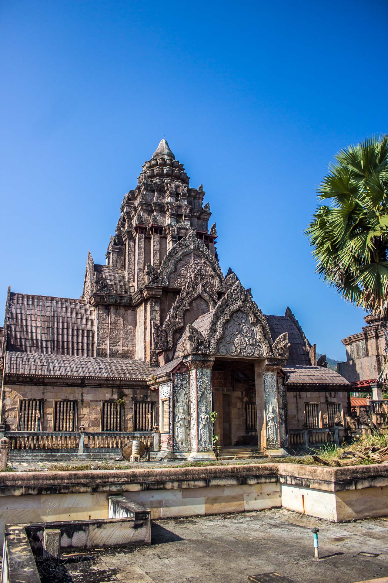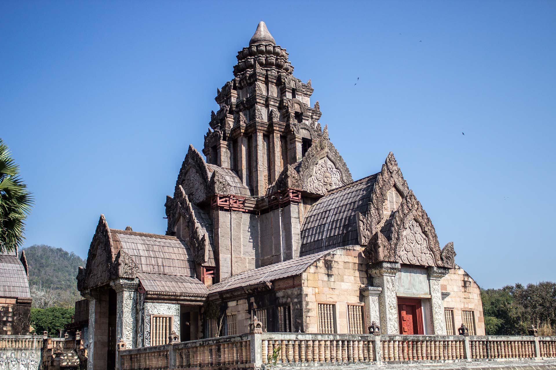 L’extérieur me rappelle l’architecture des anciens temples d’Angkor Vat au Cambodge, loin des couleurs clinquantes que l’on trouve habituellement en Thaïlande.