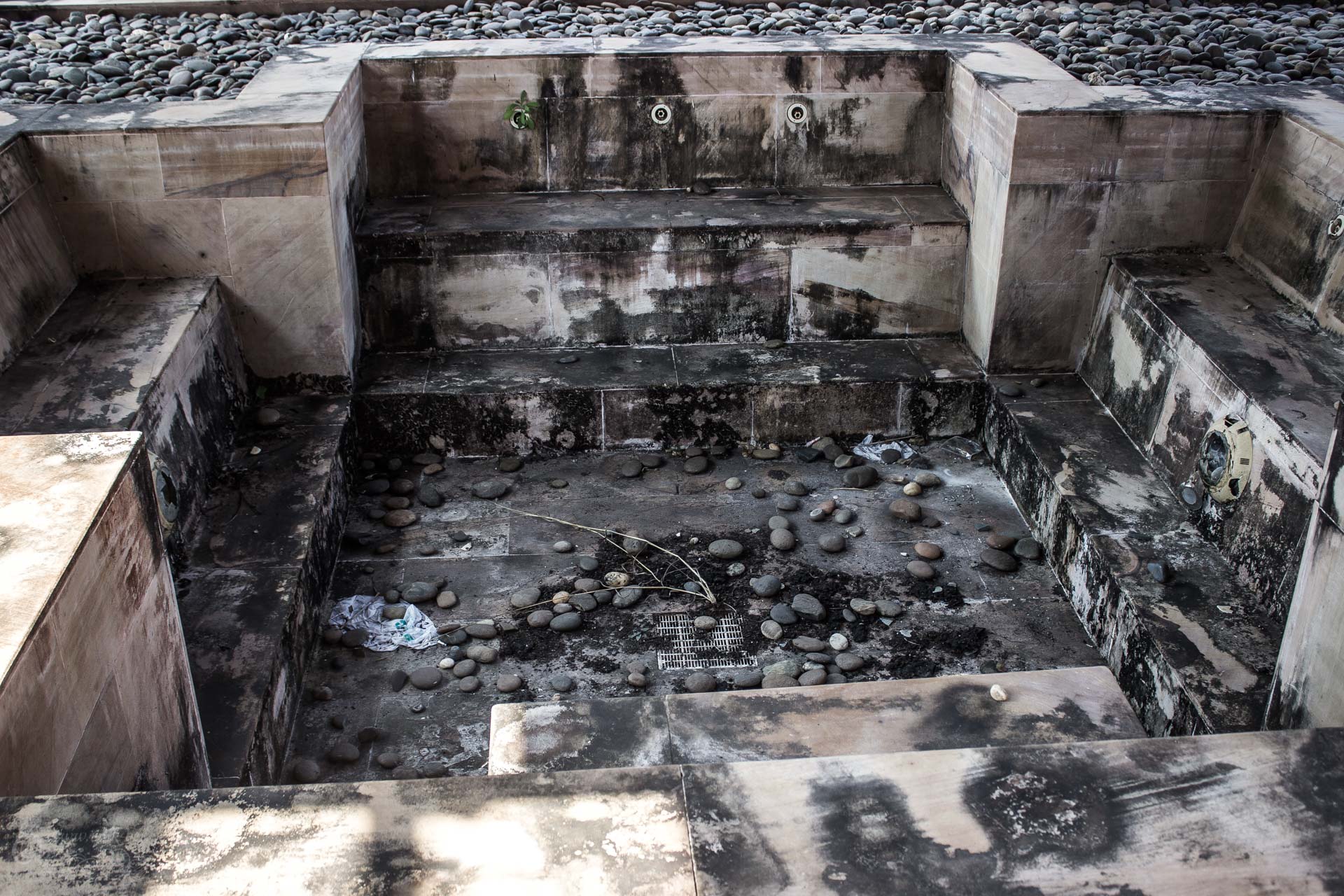 Mais à quoi était destiné ce lieu ? Si vu de loin on aurait pu penser à un complexe hôtelier, les bassins extérieurs à l’arrière et la présence de nombreux lavabos à l’intérieur laissent plutôt penser à des thermes ou autre établissement de ce type.