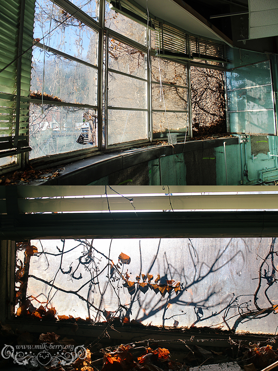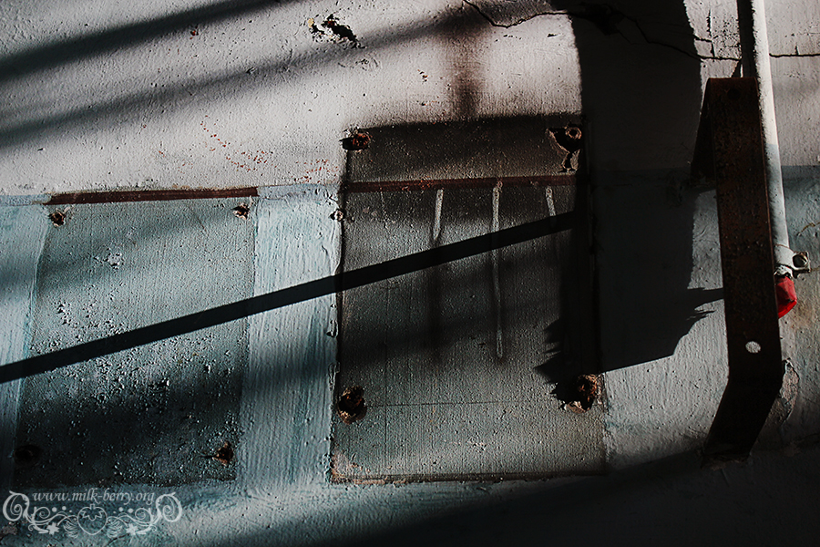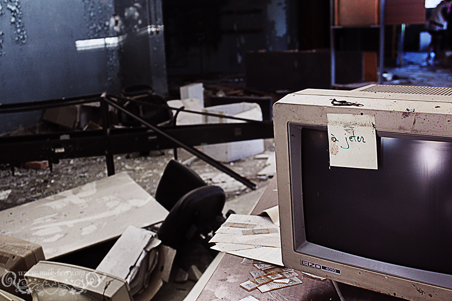 Cette fois-ci, nous ignorons la partie chimie pour explorer d’autres bâtiments. Frustration : après avoir longuement tourné autours, la centrale thermoélectrique semble inaccessible… Nous nous contenterons donc d’explorer la partie Mécanique. Petit stress vite évacué : pendant notre visite, nous sommes tombé sur un homme. Loin d’être le gardien des lieux, il s’agissait en fait d’un voleur de ferraille ! Qui nous a aimablement dit de « ne pas nous inquiéter » parce qu’il « ne dira rien »… Ah, parce que c’est nous qui sommes en train de voler, peut-être ?
