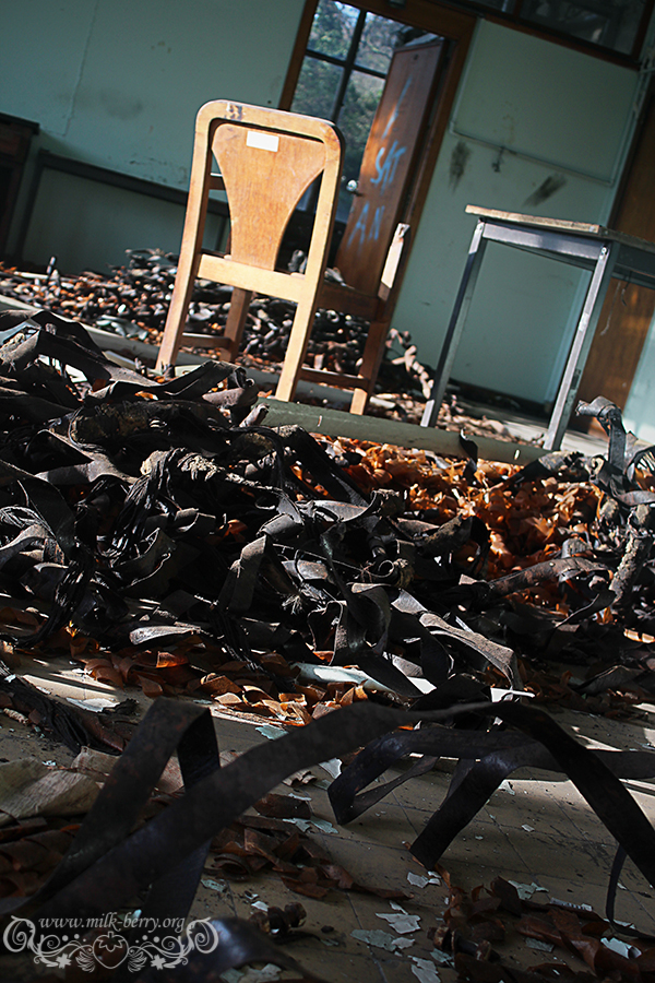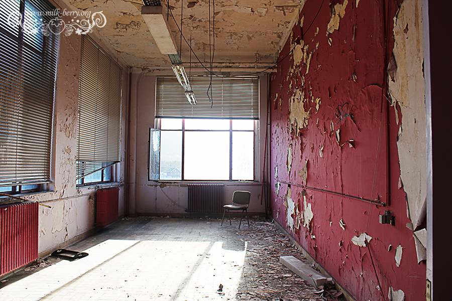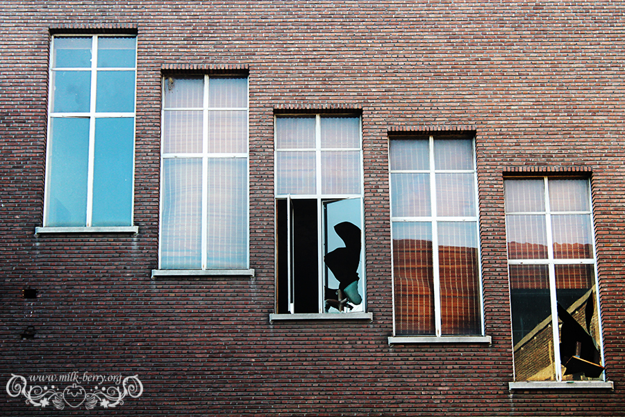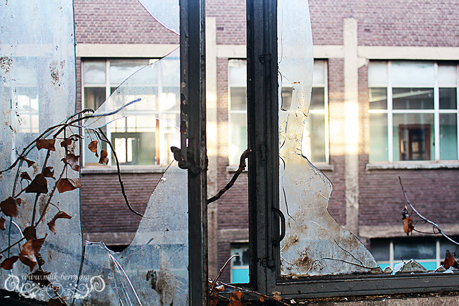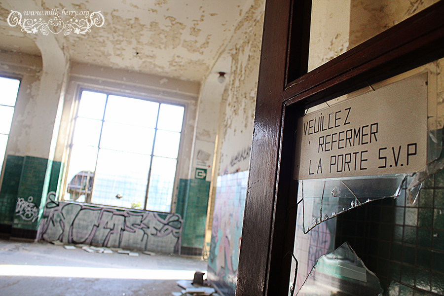 C’est en compagnie d’Erwan et de mon compagnon que j’ai finalement pénétré à l’intérieur de l’ancienne université du Val Benoît pour ma première exploration urbaine. Il nous a suffit de passer par-dessus le mur et de se glisser dans la section chimie par une fenêtre cassée (à noter que depuis, l’accès par lesdites fenêtres a été bloqué par des grillages). Au programme : faire le tour des lieux pour ensuite réaliser quelques portraits pour mon ami comédien.