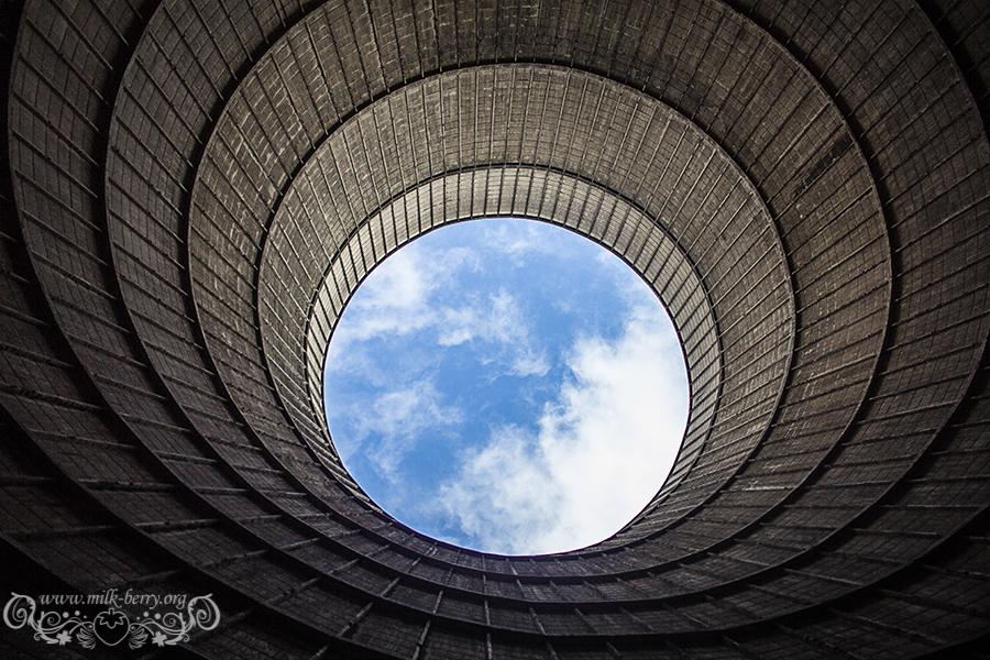 On continue notre tour en région carolo jusqu’à la fameuse tour de refroidissement. Imposante et repérable de loin, on commence par en faire le tour par le bas.