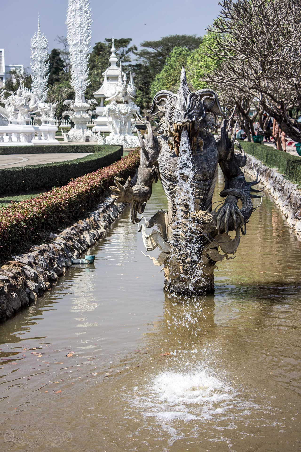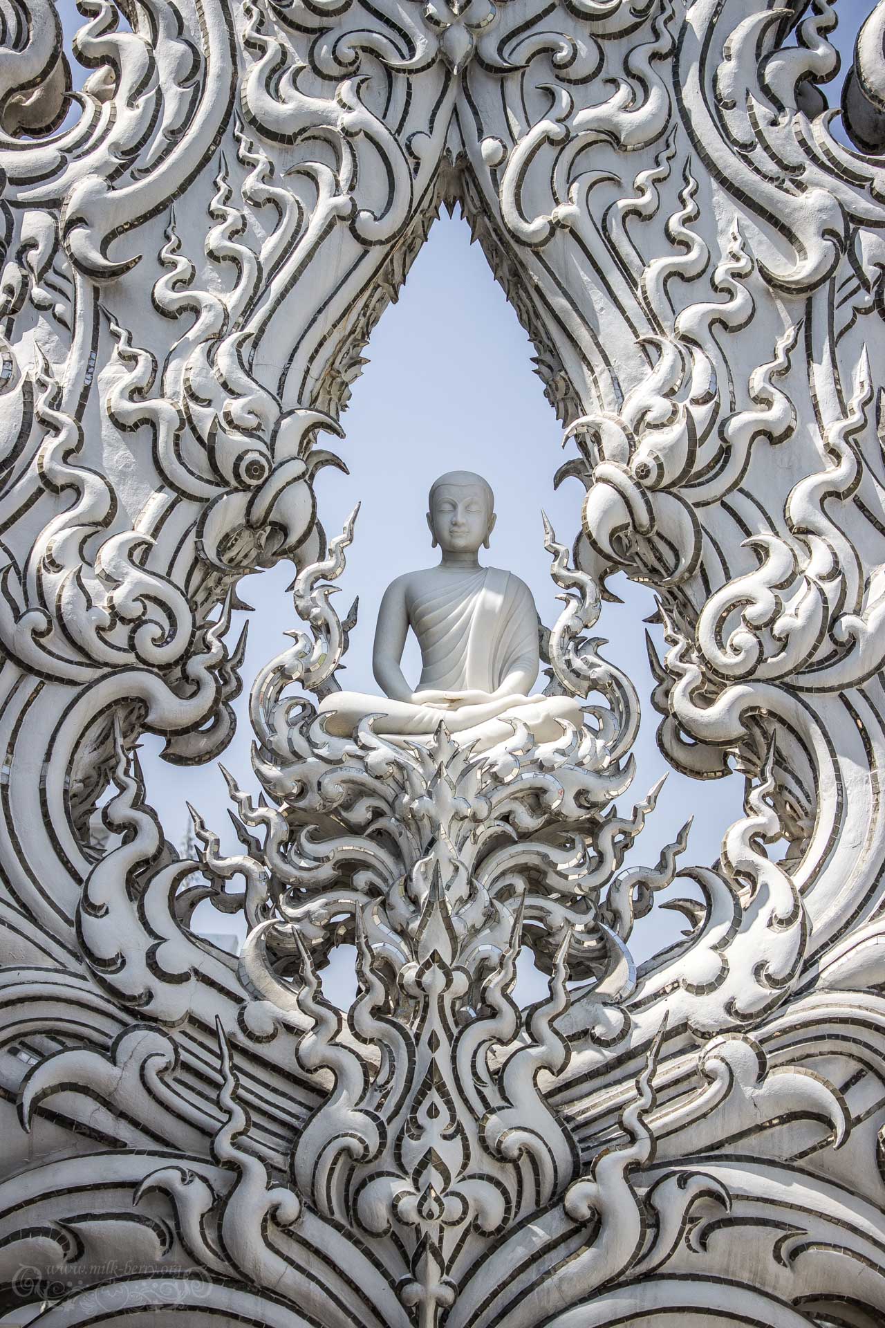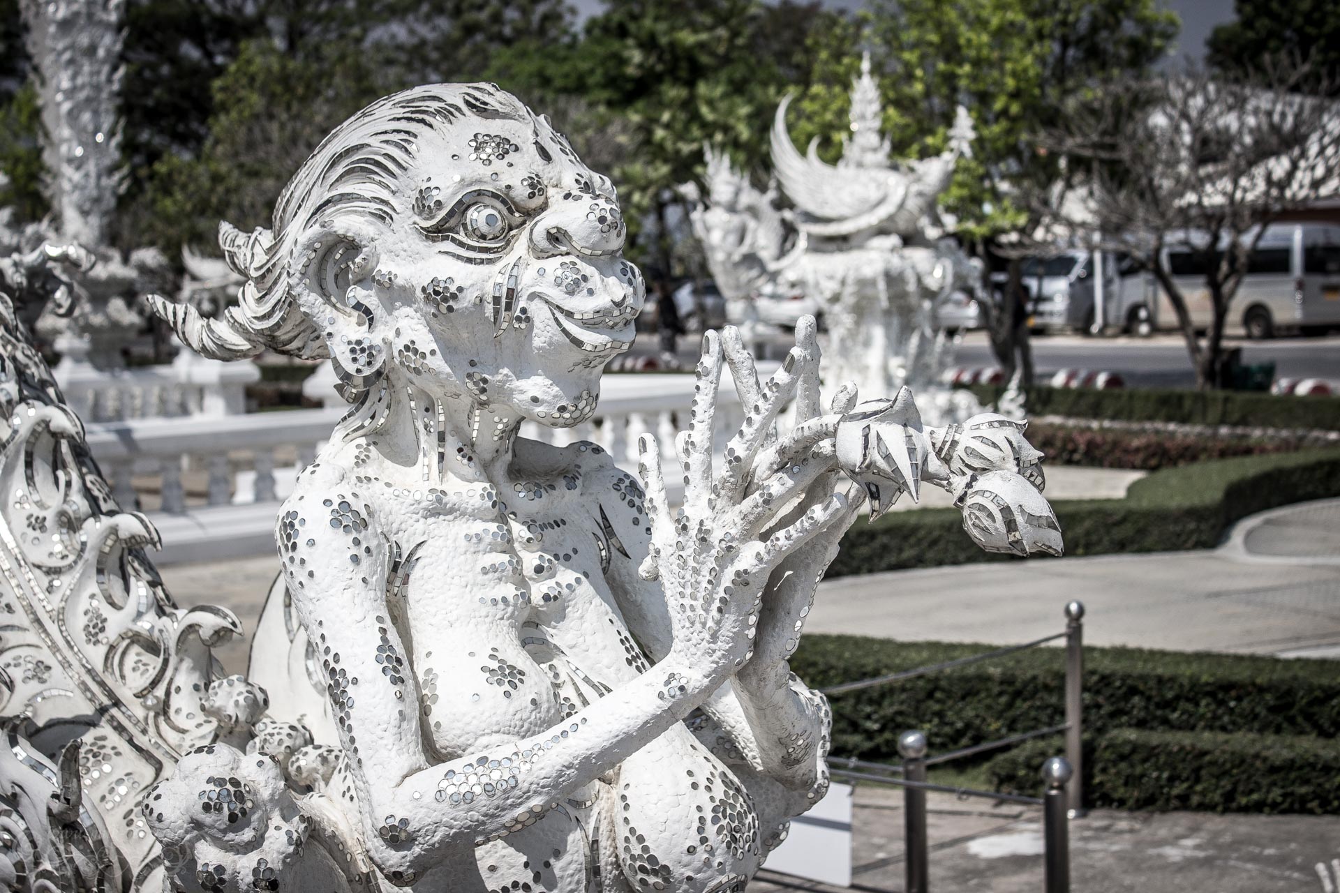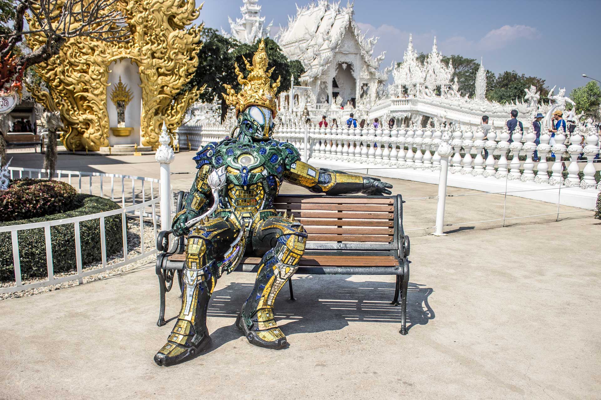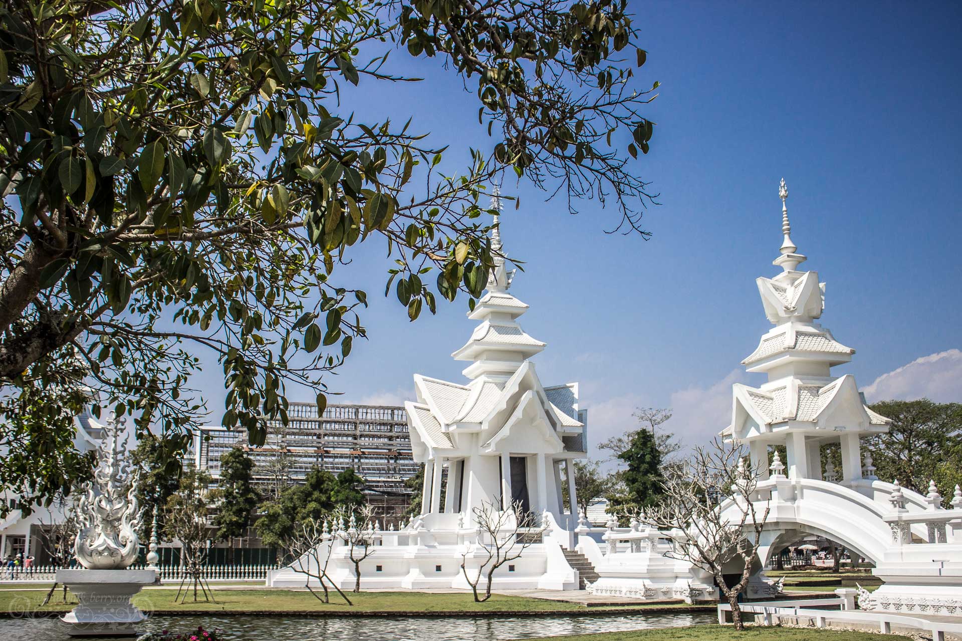 Le White Temple est une création de l’artiste Chalermchai Kositpipat. Entièrement dédié à l’Art, le site est toujours en construction : il est prévu qu’une fois achevé (en 2070 !), le temple se compose de 9 bâtiments représentant la vision du paradis bouddhiste sur terre.